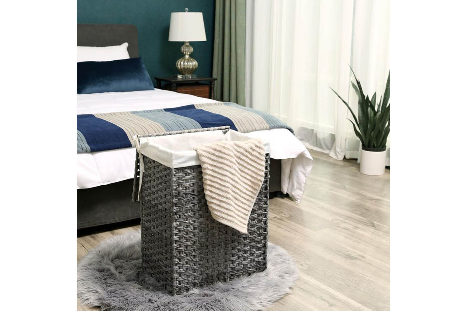 Meticulously crafted, this beautifully handwoven synthetic rattan laundry hamper in gray is the missing piece you need to hide away your dirty clothes and keep your home in perfect order.