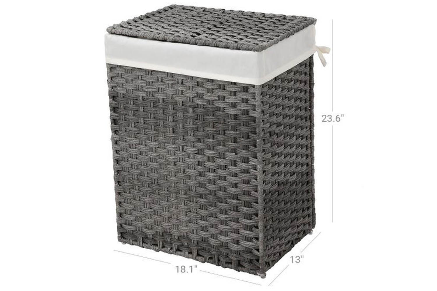 With the 18.1“L x 13“W x 23.6“H (46 x 33 x 60 cm) SONGMICS laundry hamper, you can easily toss in your dirty clothes and bring them where you want. The liner bag ties to the basket so it won’t fall to the bottom, while it still remains easy to take out and carry.