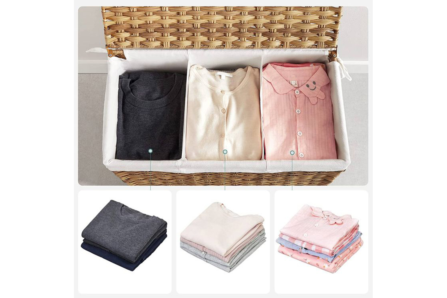 It’s easy to toss your dirty clothes onto the chair or floor. But before you feel unhappy in a messy room and spend more time gathering them up, why not try this laundry basket with 3 compartments? The chaos is hidden under the lid, and even better, you can finish the sorting while tossing.