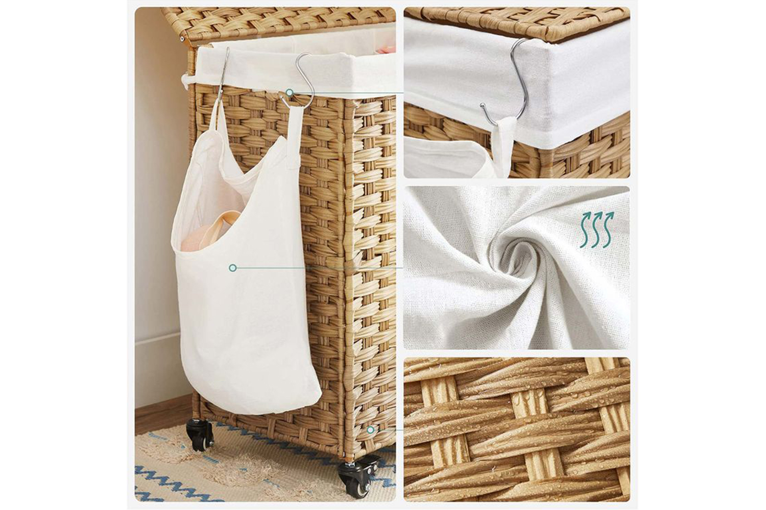 Don’t forget the cotton liner of this laundry basket when you do a big clean! The liner is removable for easy cleaning; also, it’s machine washable for your next laundry day!