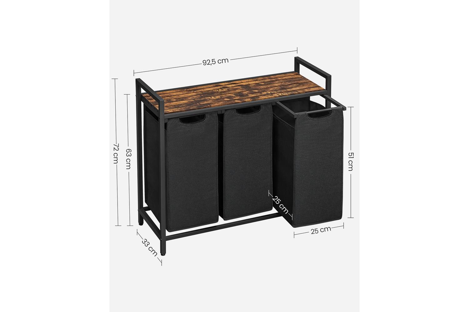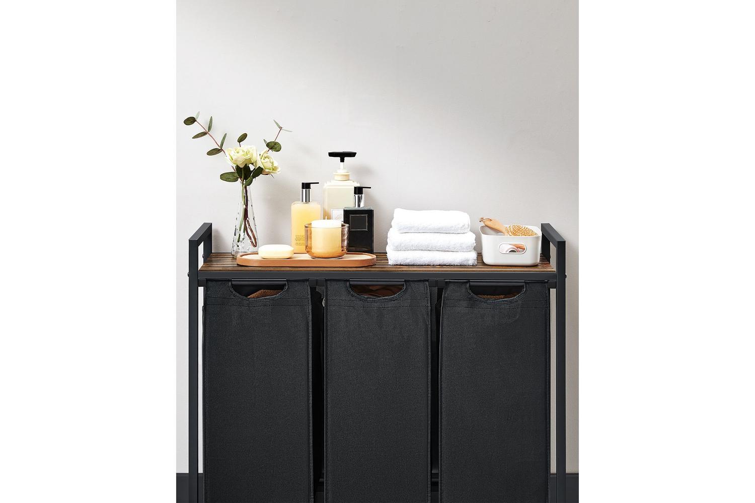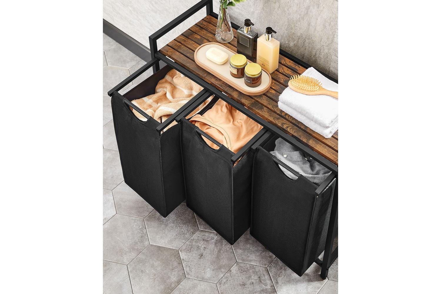 But it's not just its convenience that makes this sorter a standout—its remarkable strength and stability come from the sturdy steel frame complemented by quality MDF panels, reassuring you of a long-lasting purchase. With an impressive weight bearing of 45 kg for the shelf and 8 kg per bag, it can brave your expansive laundry volumes no sweat.