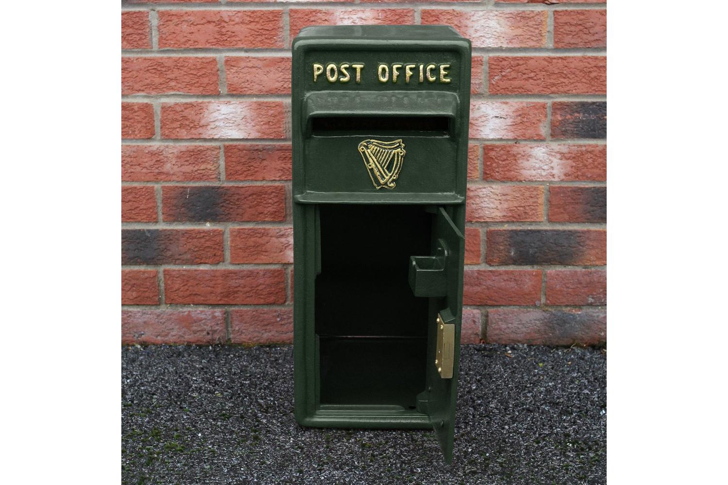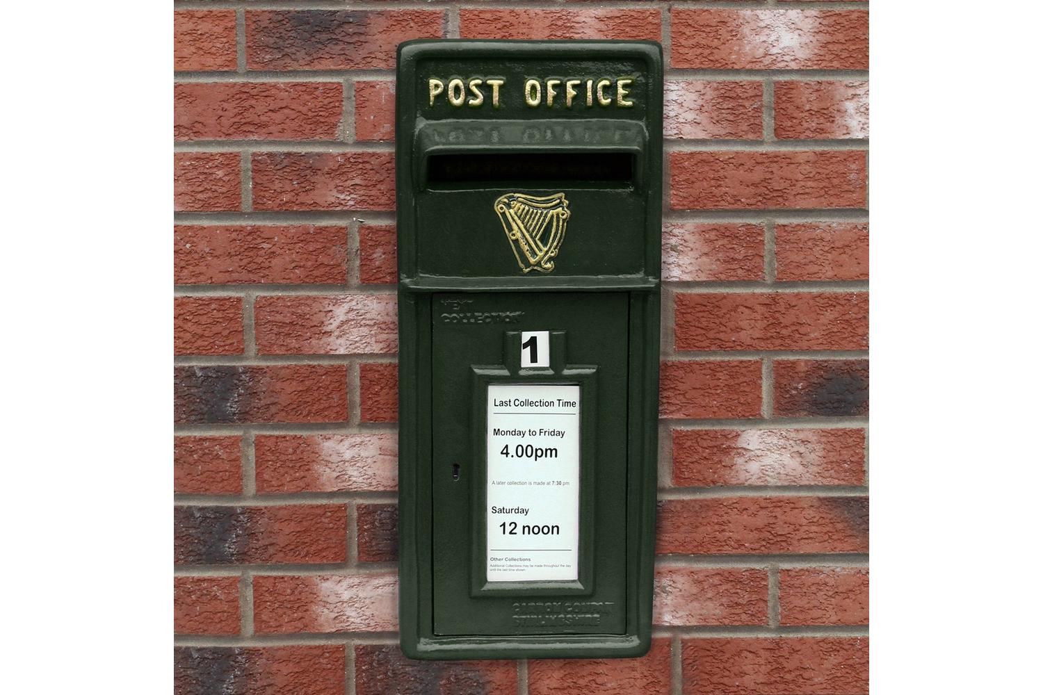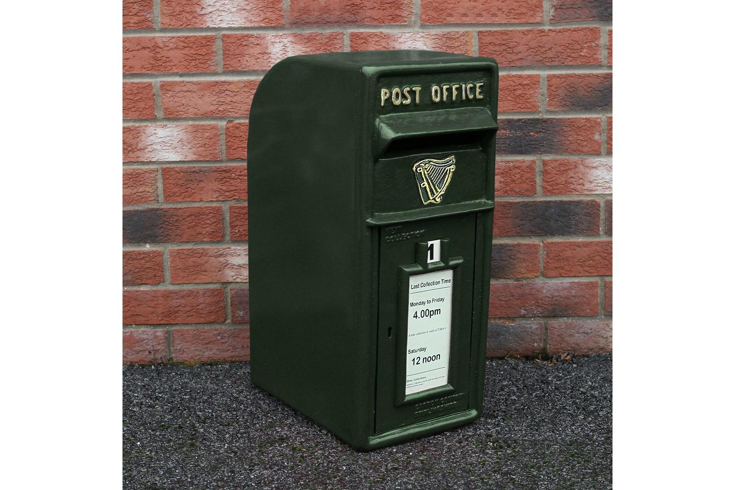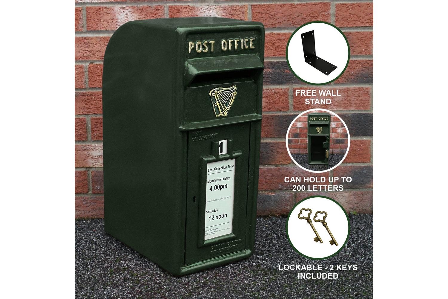 Introducing the MONSTERSHOP 27176 Green Irish Post Box, your ideal home and garden accessory designed with an essence of Irish heritage. It's not just an average mailbox, but a unique way to customize your house front with a nod towards Irish tradition. Made from sturdy cast iron and glazed with appealing gloss paint finish, this post box effortlessly stands the test of time and varying weather conditions. Moreover, it's ideal for outdoor use, so whether you fancy it in your garden or outside your main entrance, the choice is absolutely yours.
