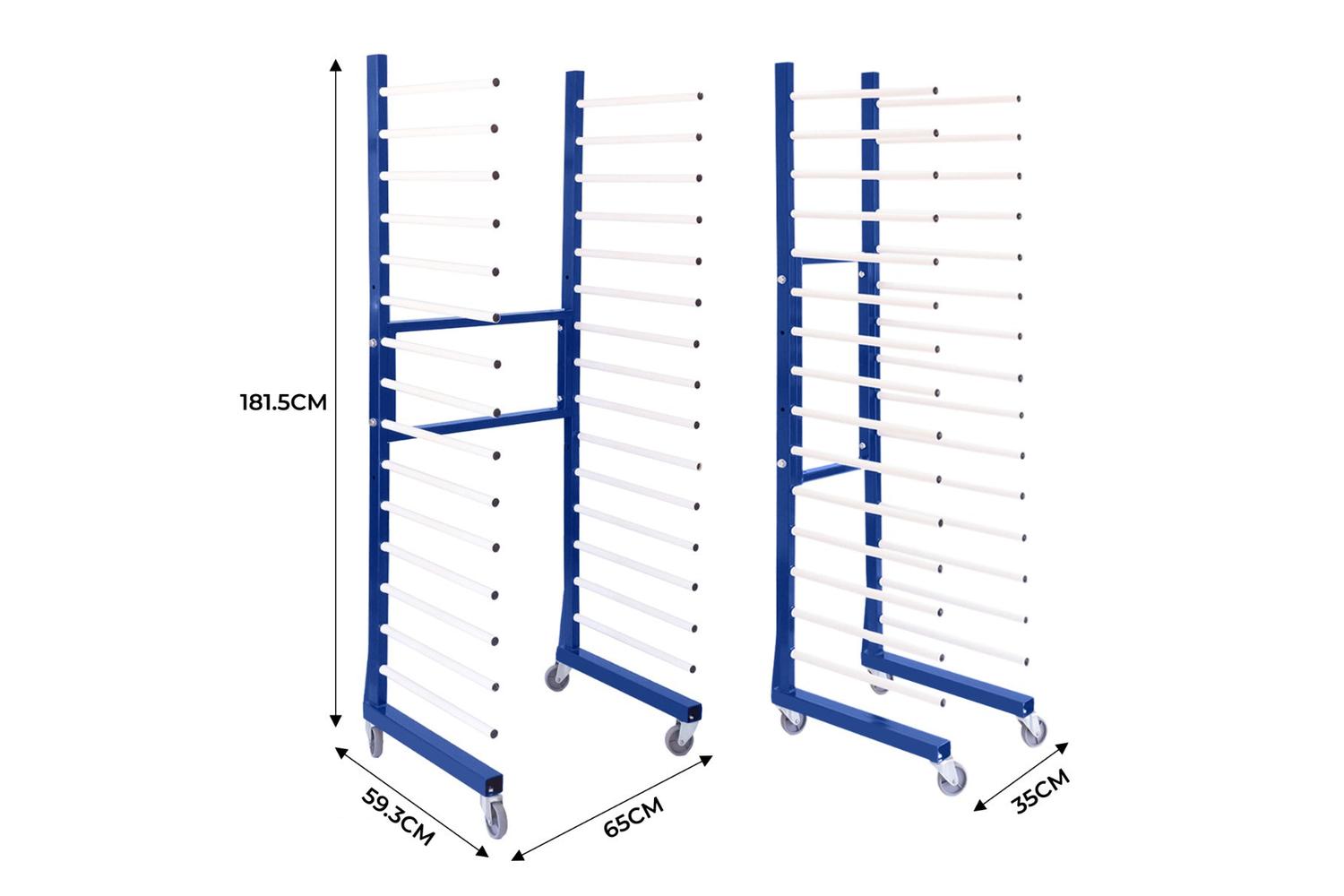 Each robust trolley furnishes 15 spacious drying layers, accommodating your painted items with ease while ensuring efficient drying in your paint shop or workshop. Thanks to its powder-coated steel frame, not only does it guarantee durability, but it also unexpectedly transforms your workspace into a sleek and professional environment, highlighting your dedication to quality.