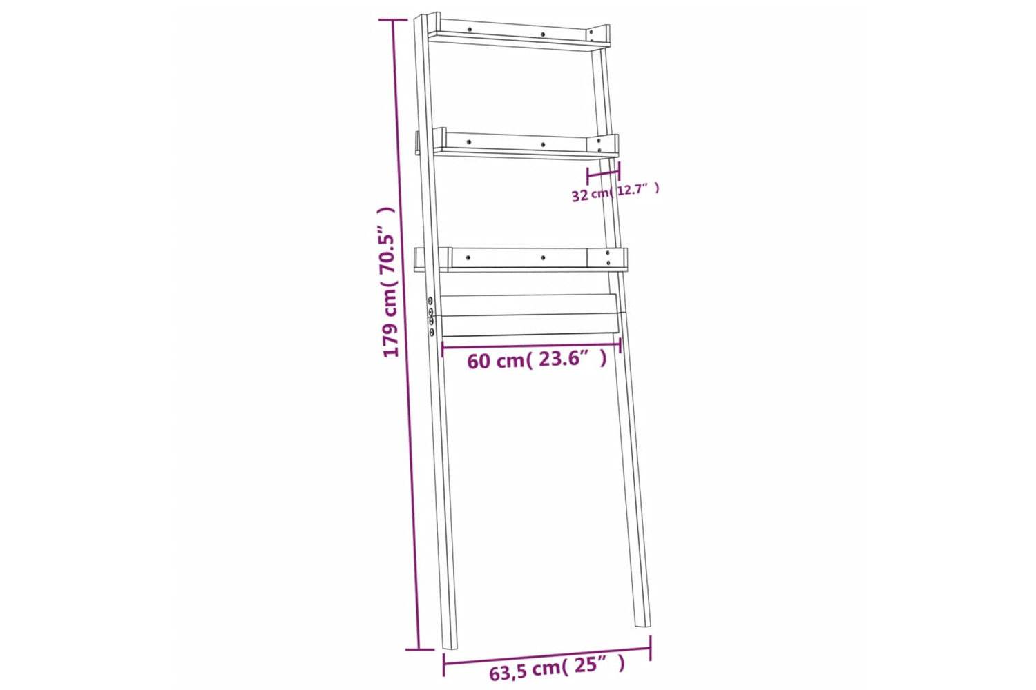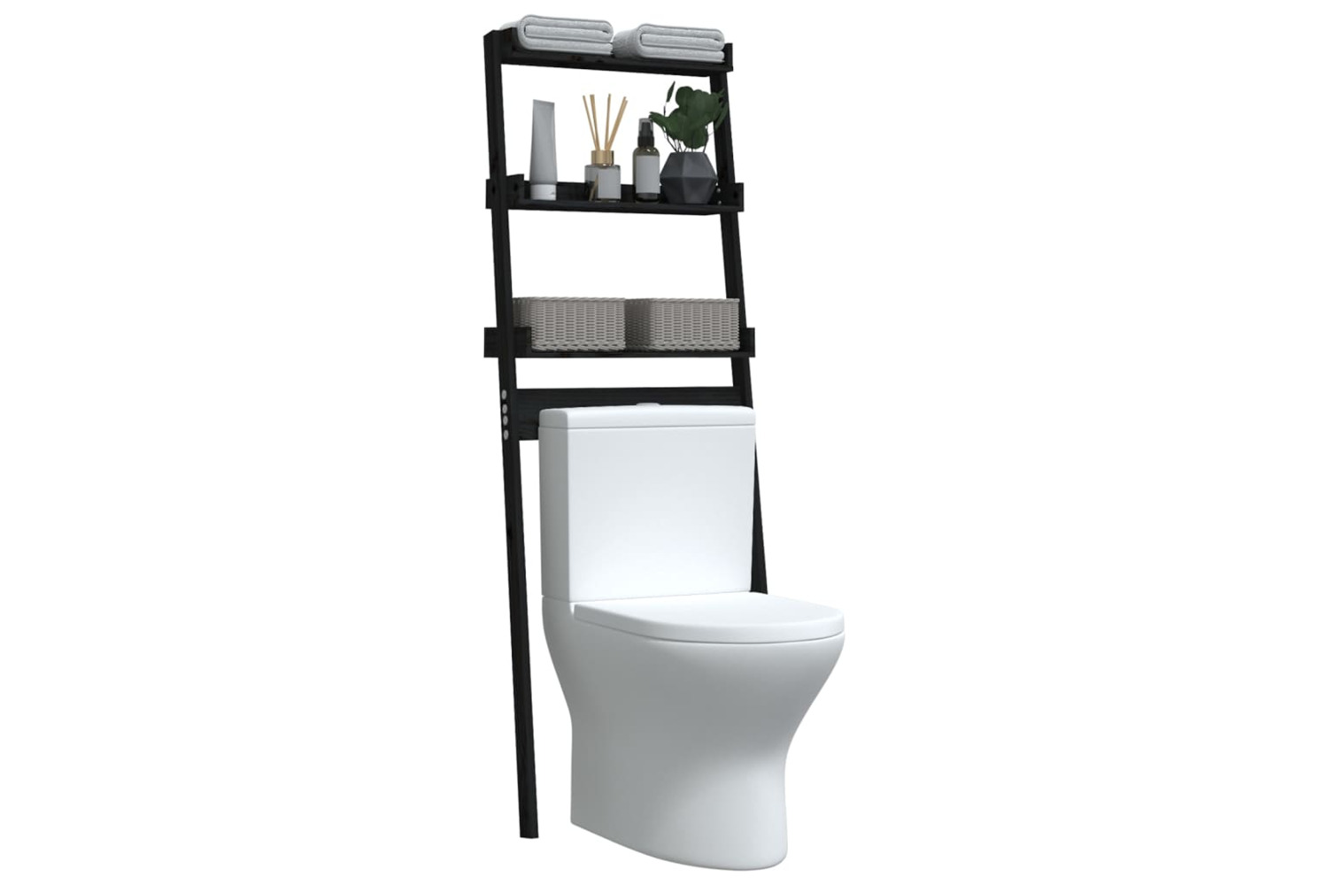 vidaXL 824657 Toilet Rack Black 63.5x32x179cm Solid Wood Pine