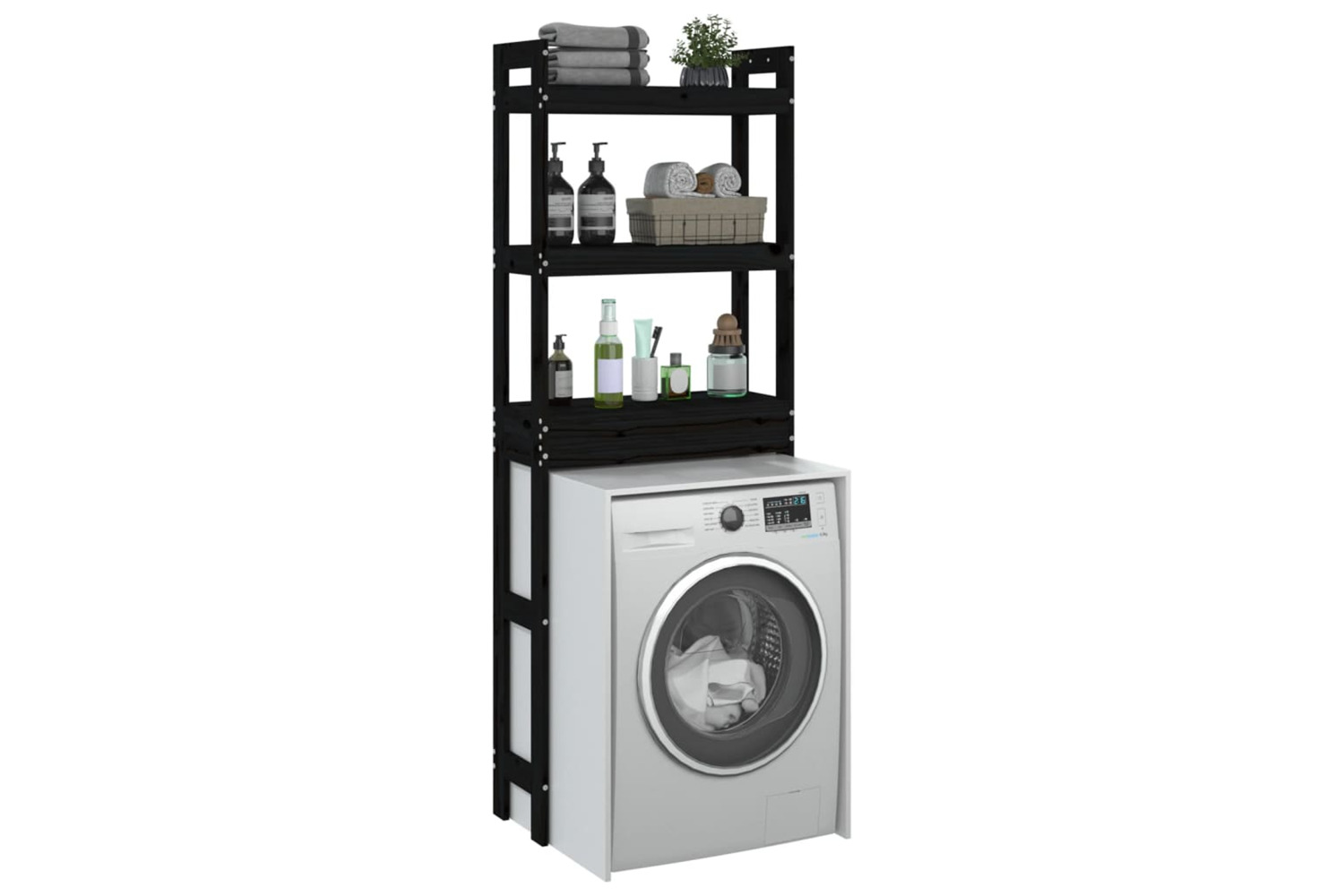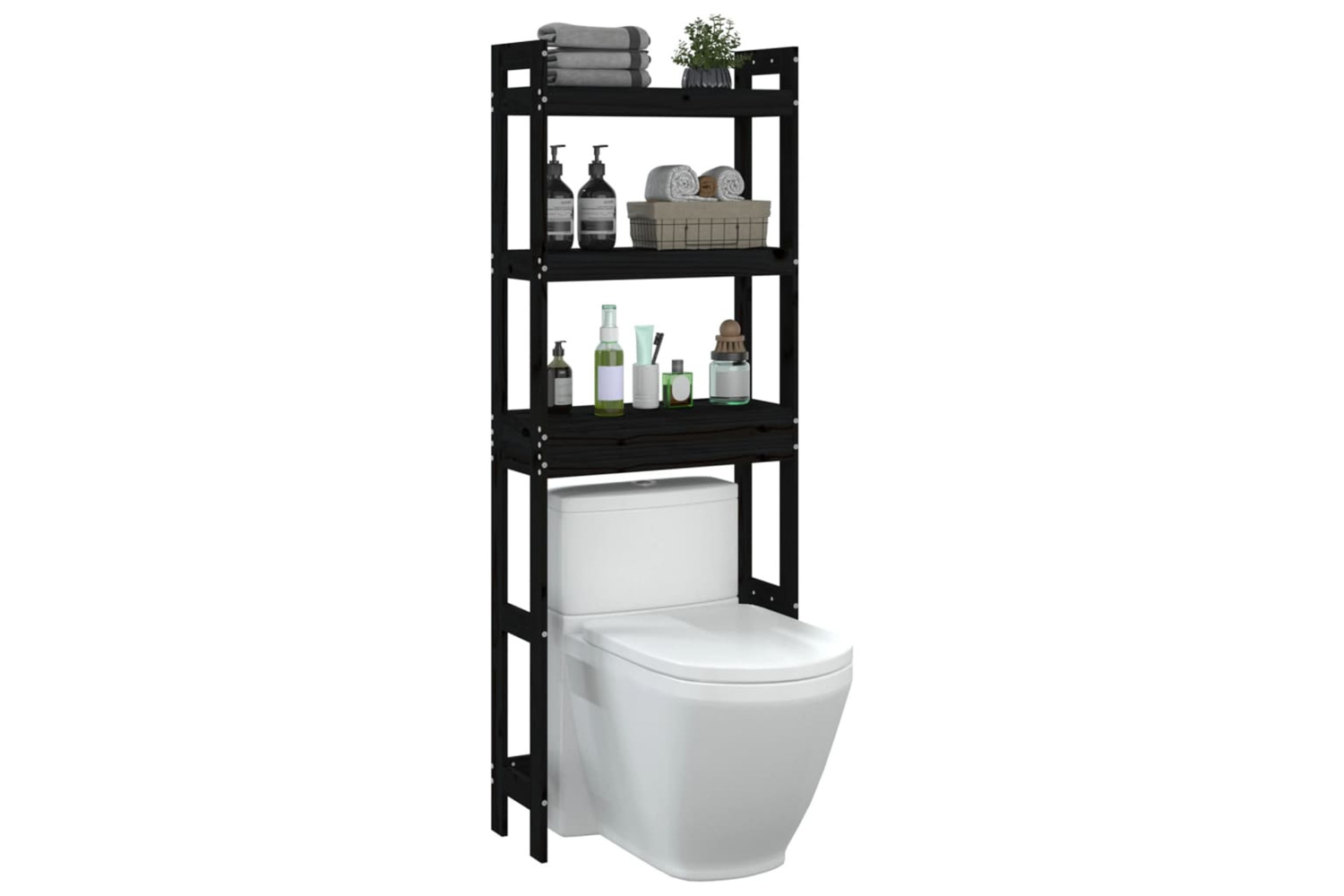 vidaXL 824662 Toilet Rack Black 63x26x171cm Solid Wood Pine