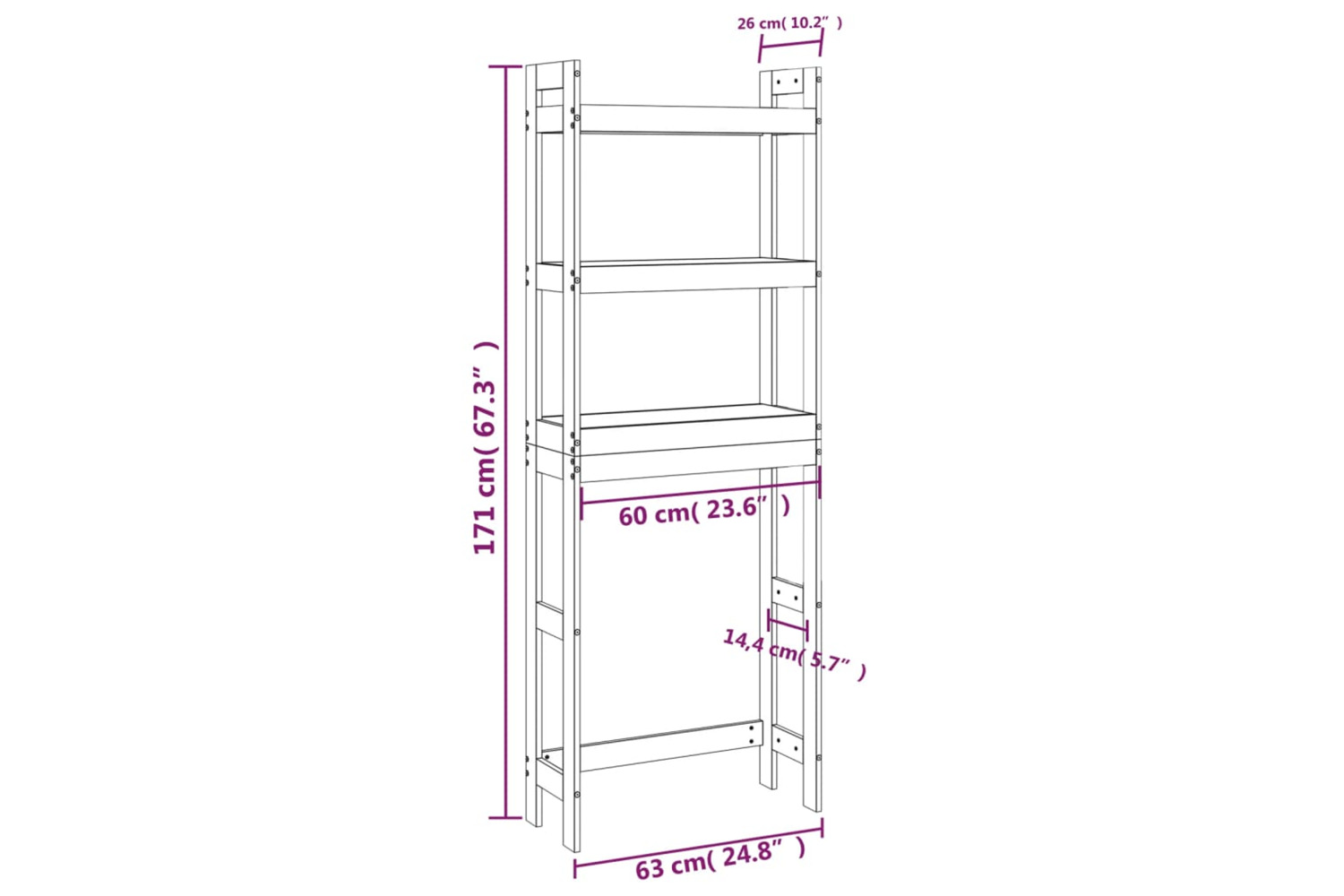 • Dimensions: 63 x 26 x 171 cm (W x D x H)