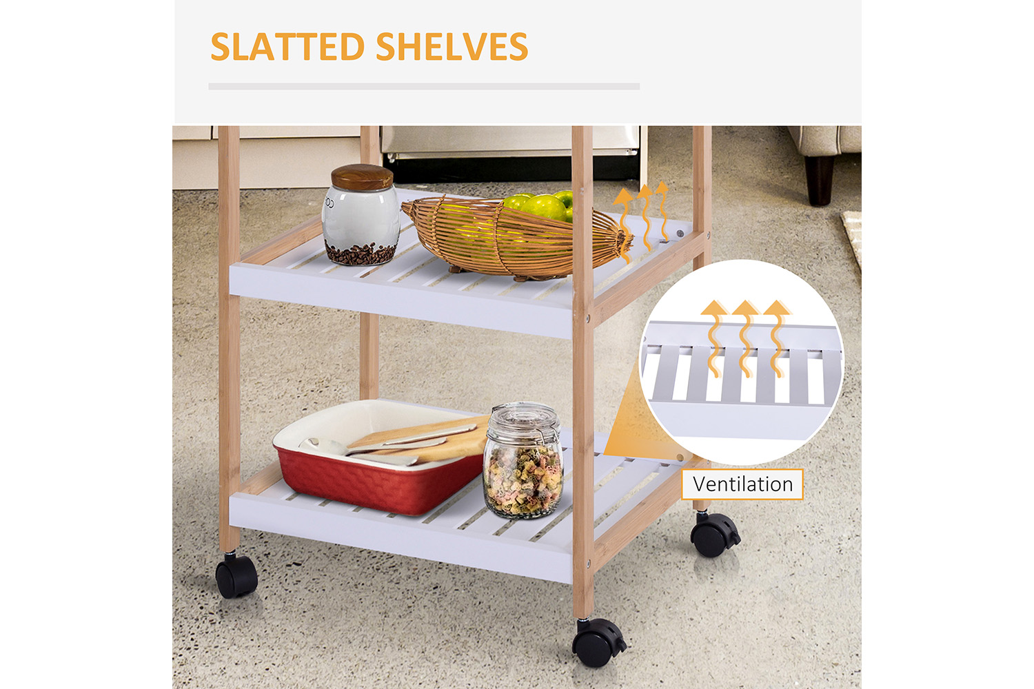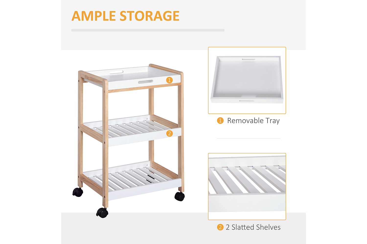 Homcom Mobile Kitchen Trolley Cart | White/Natural