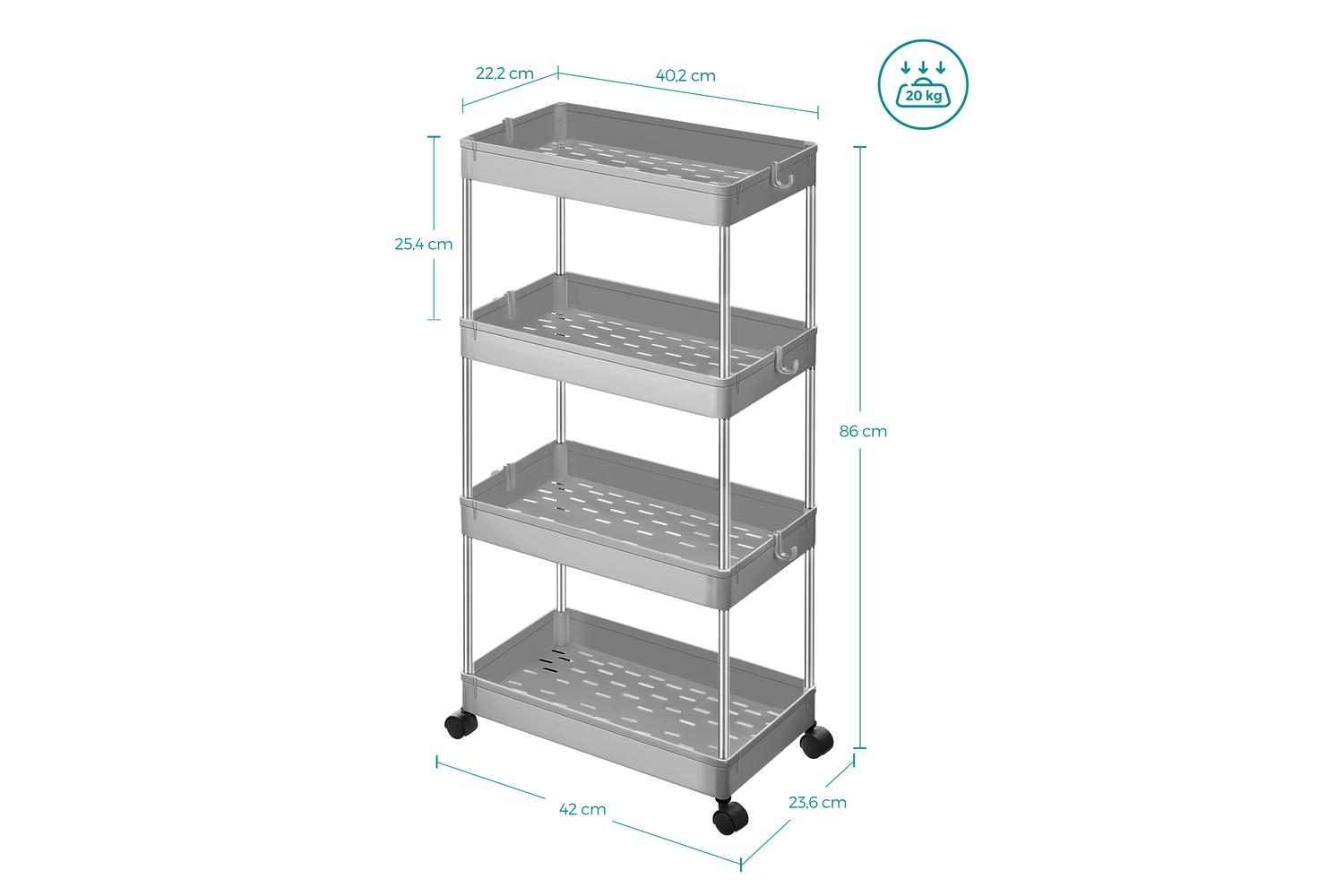 Transform your kitchen, bathroom, or laundry room with the SONGMICS Kitchen Storage Rack – a sleek, slimline storage solution designed for modern Irish living. Whether you are tight on space or simply want to keep your essentials organised and within easy reach, this versatile 4-tier storage cart is the answer. Its compact footprint (40 x 22 x 86 cm) means it fits snugly into narrow gaps, making it perfect for apartments, cottages, or any home where every inch counts.