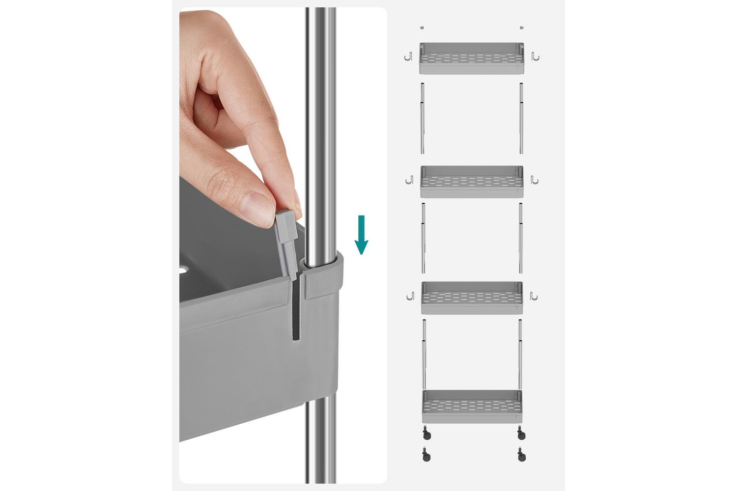 Thanks to its smooth 360° swivel casters, the SONGMICS Kitchen Storage Rack glides effortlessly in and out of tight spaces. Cleaning and reorganising has never been easier – simply roll the cart to wherever you need it. The baskets can even be used separately on countertops or inside cabinets, giving you flexible storage options throughout your home.