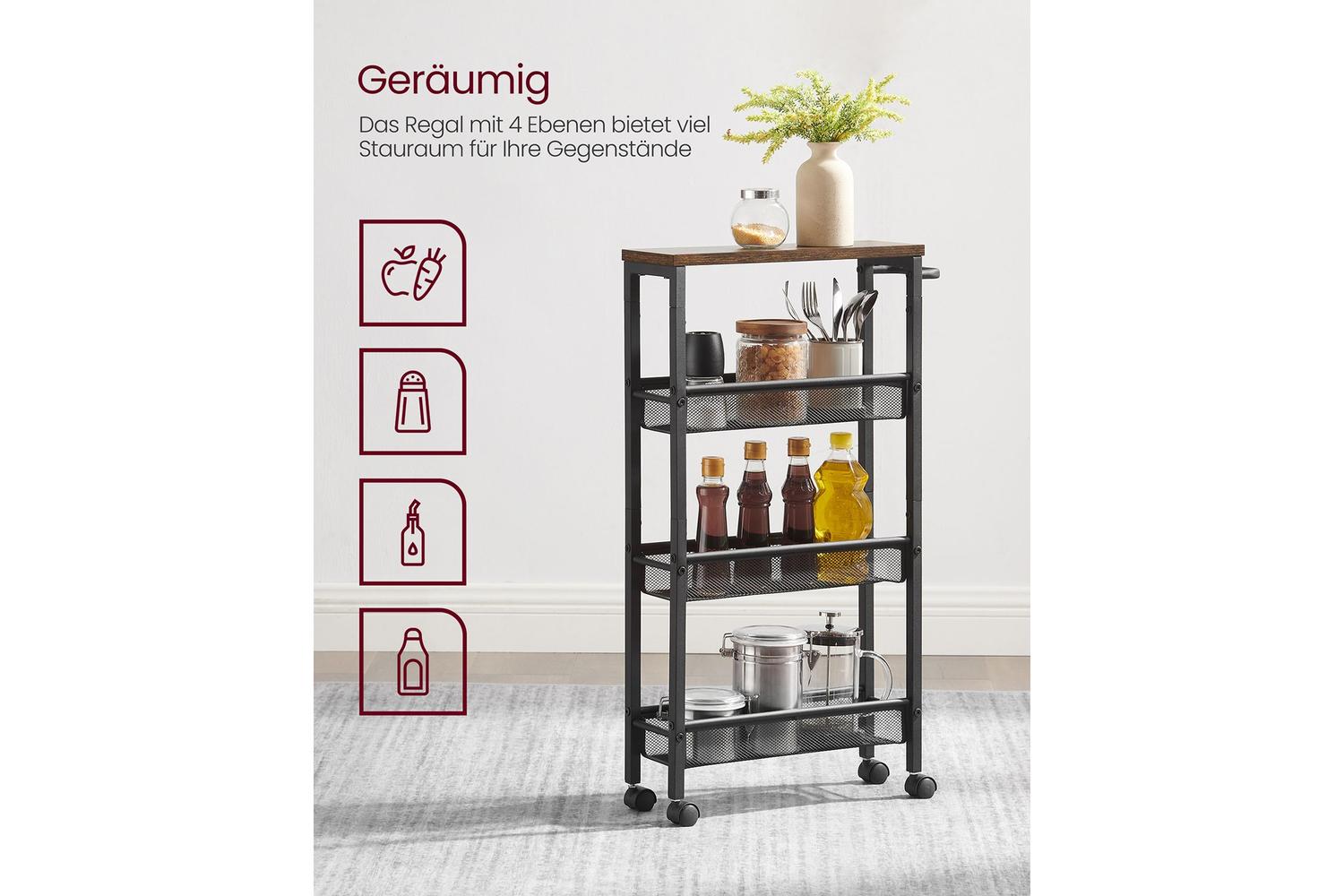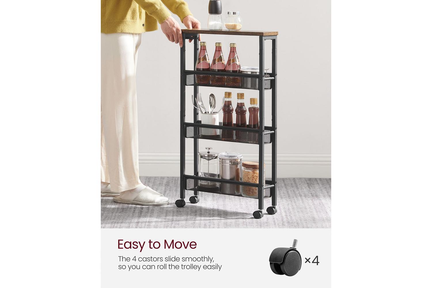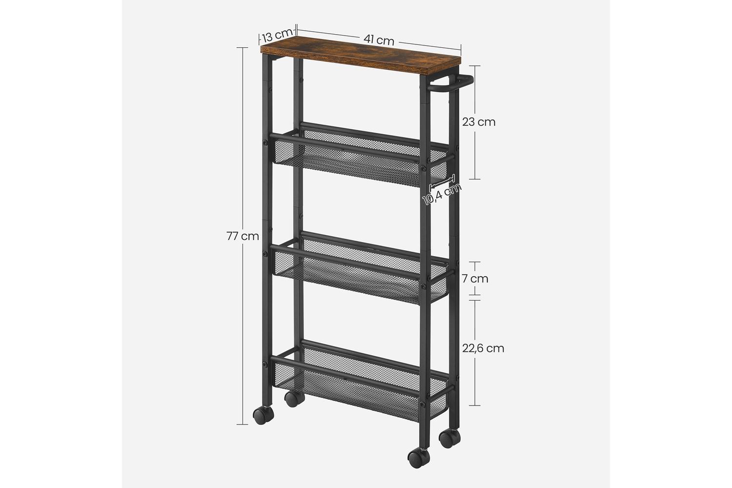 VASAGLE Rolling Cart | Trolley | Chipboard And Steel | 13 x 45.4 x 77 cm