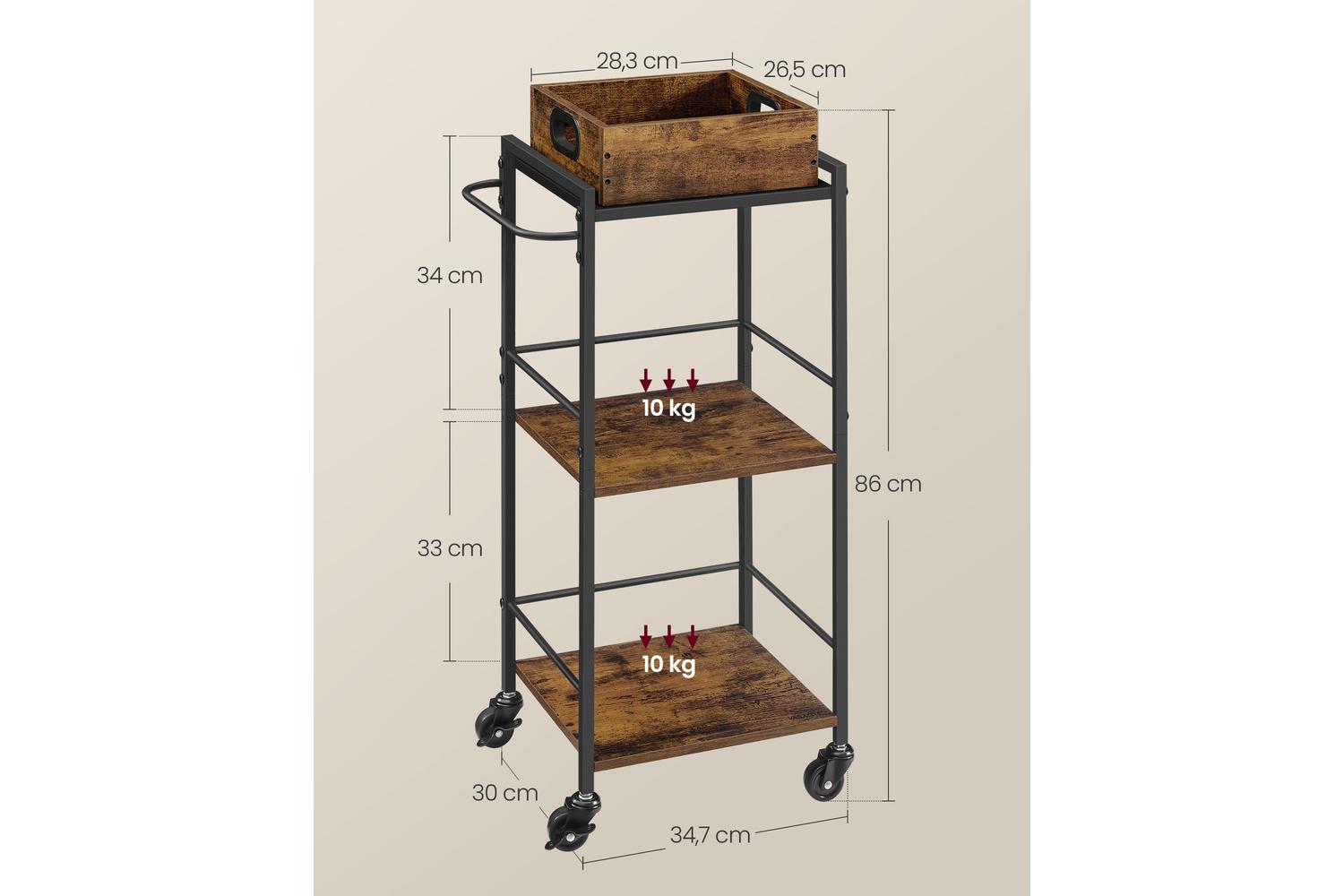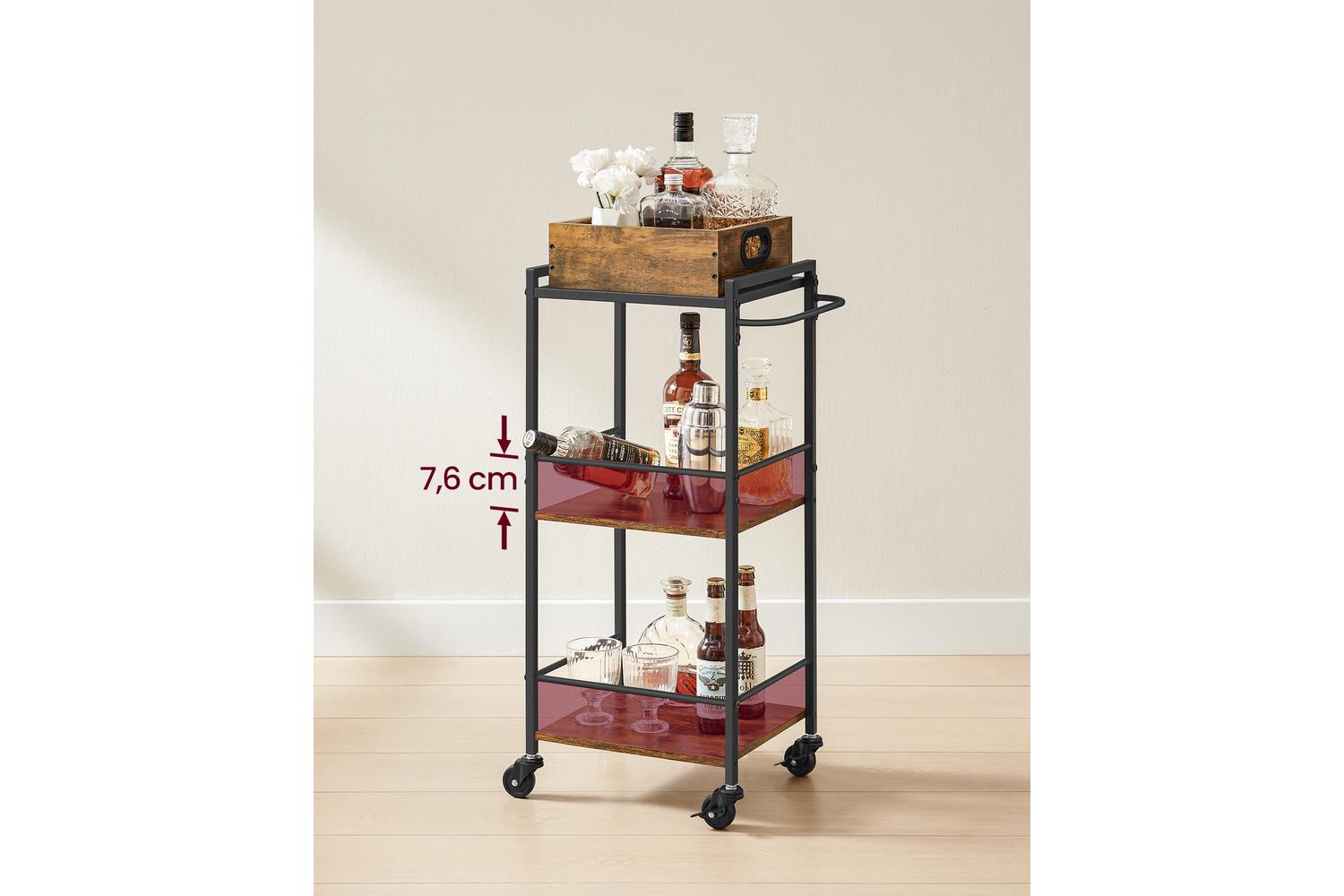 VASAGLE Serving Cart | Trolley | Vintage Brown And Black | Three Shelves