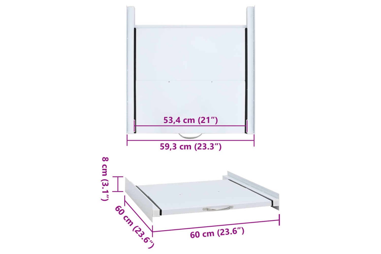 This universal stacking kit fits various washing machines. Made of high-quality steel, the stacking kit is very robust. It also has a convenient pull-out shelf for extra storage space.