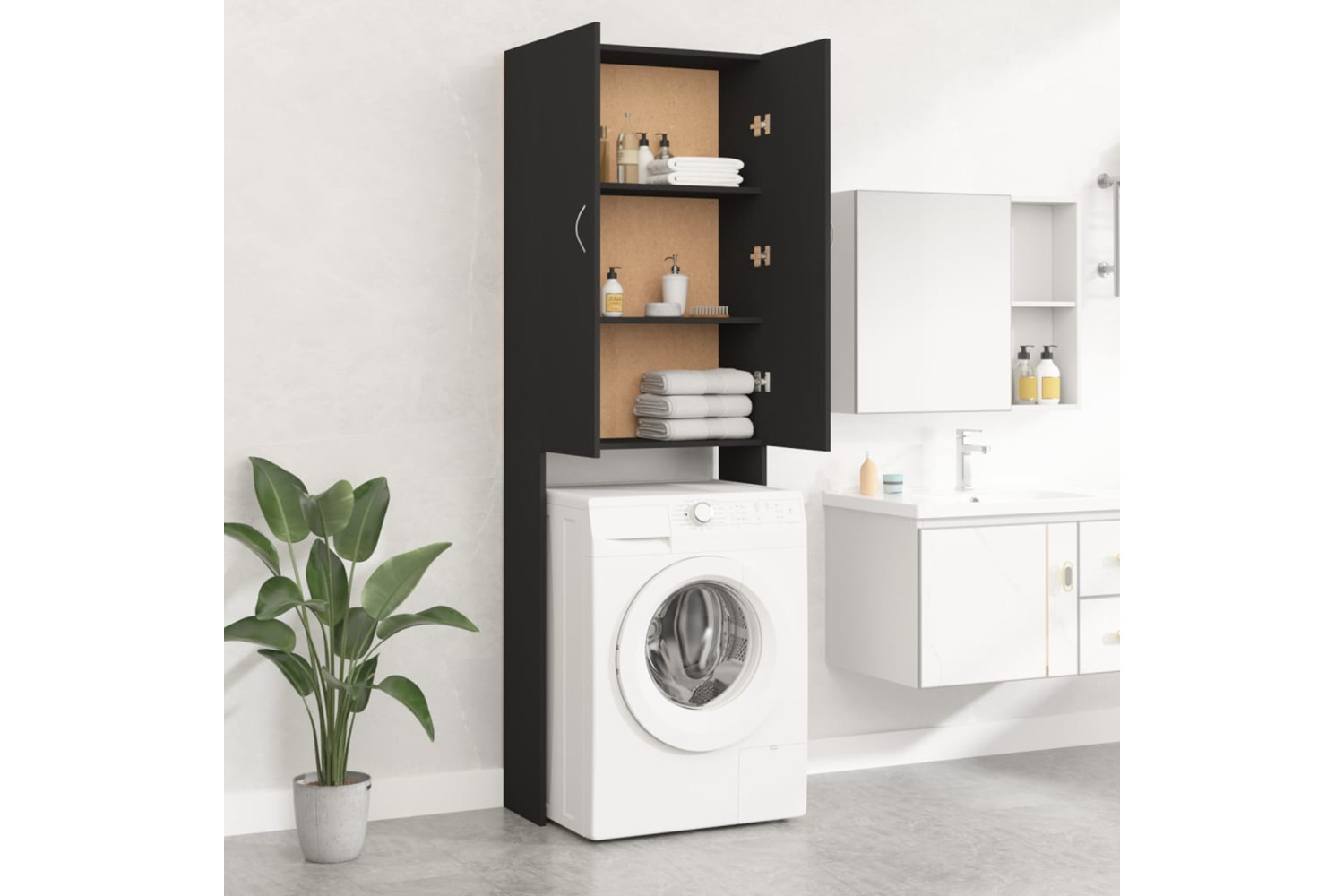 vidaXL Washing Machine Cabinet Black 64x25.5x190cm