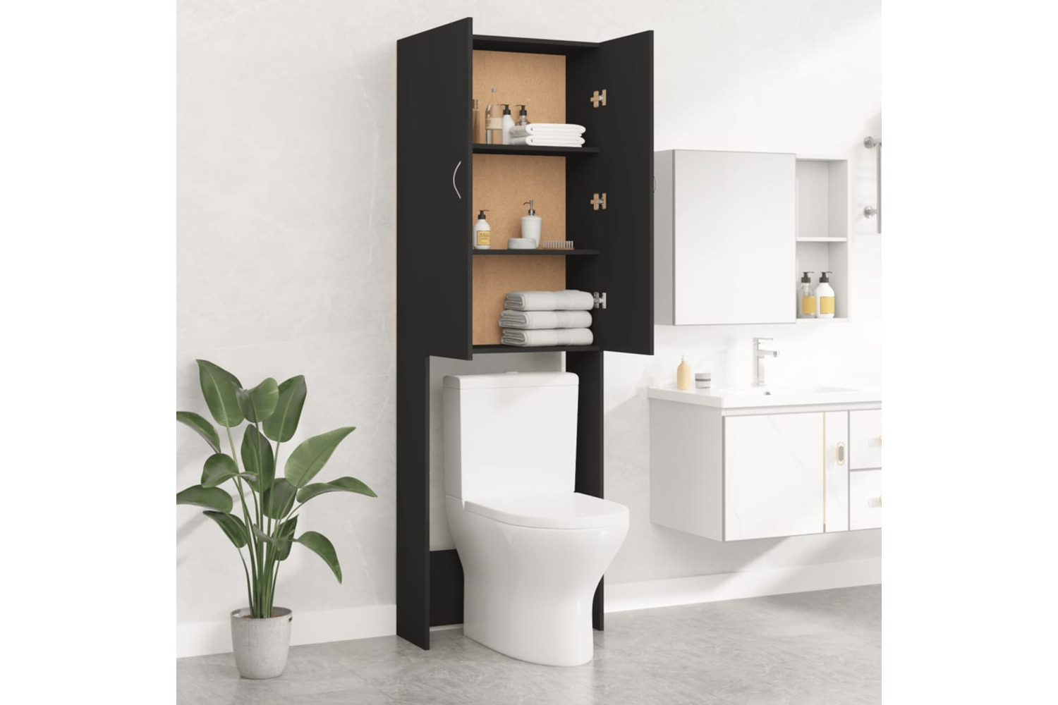 This bathroom cupboard is sturdy and durable. The 2 doors and 3 compartments offer ample storage room for keeping your laundry utensils, cleaning supplies, toiletries and other items well organised and within reach. Additionally, this cabinet is easy to clean with a damp cloth.