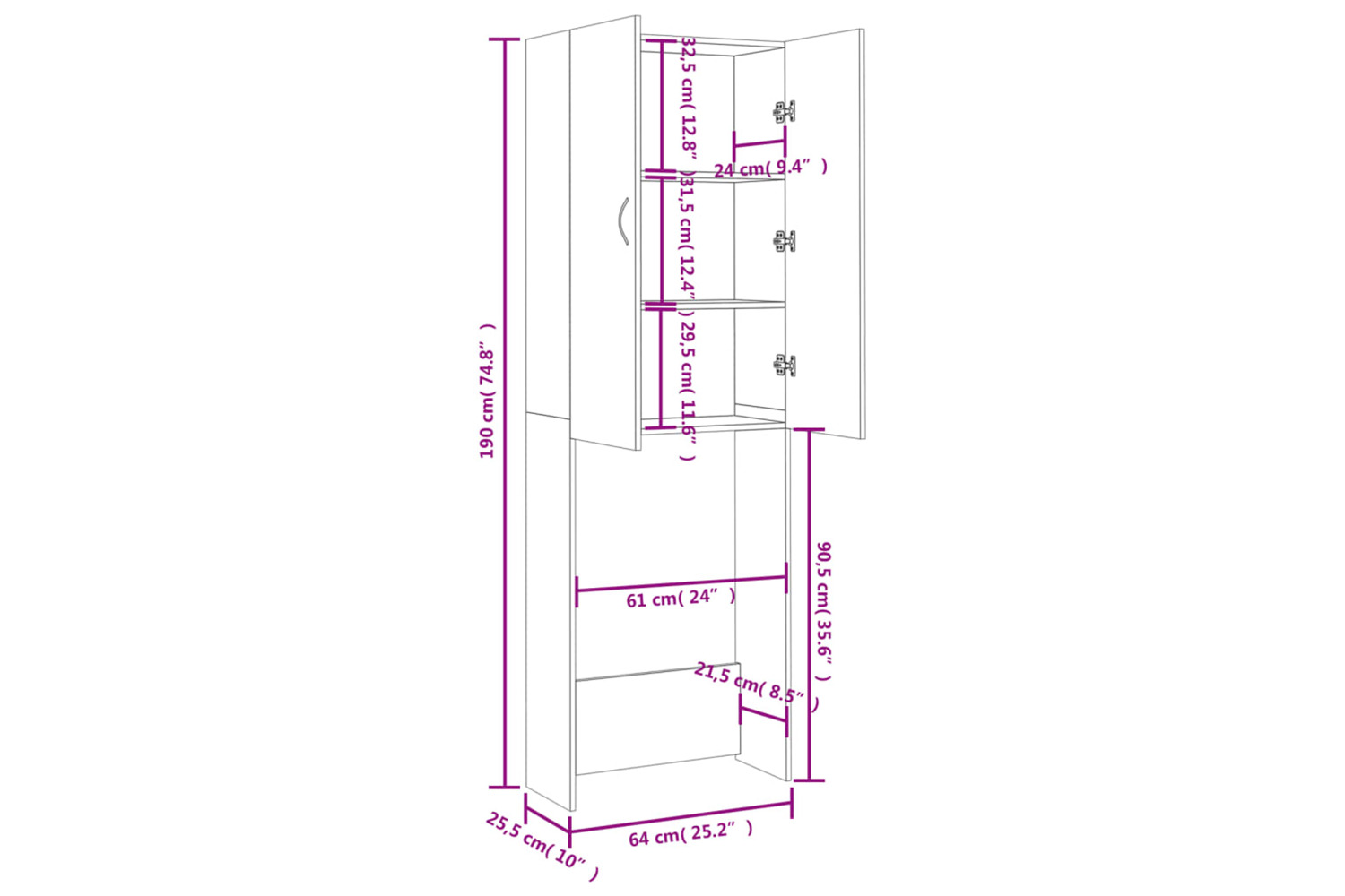 • Dimensions: 64 x 25.5 x 190 cm (W x D x H)