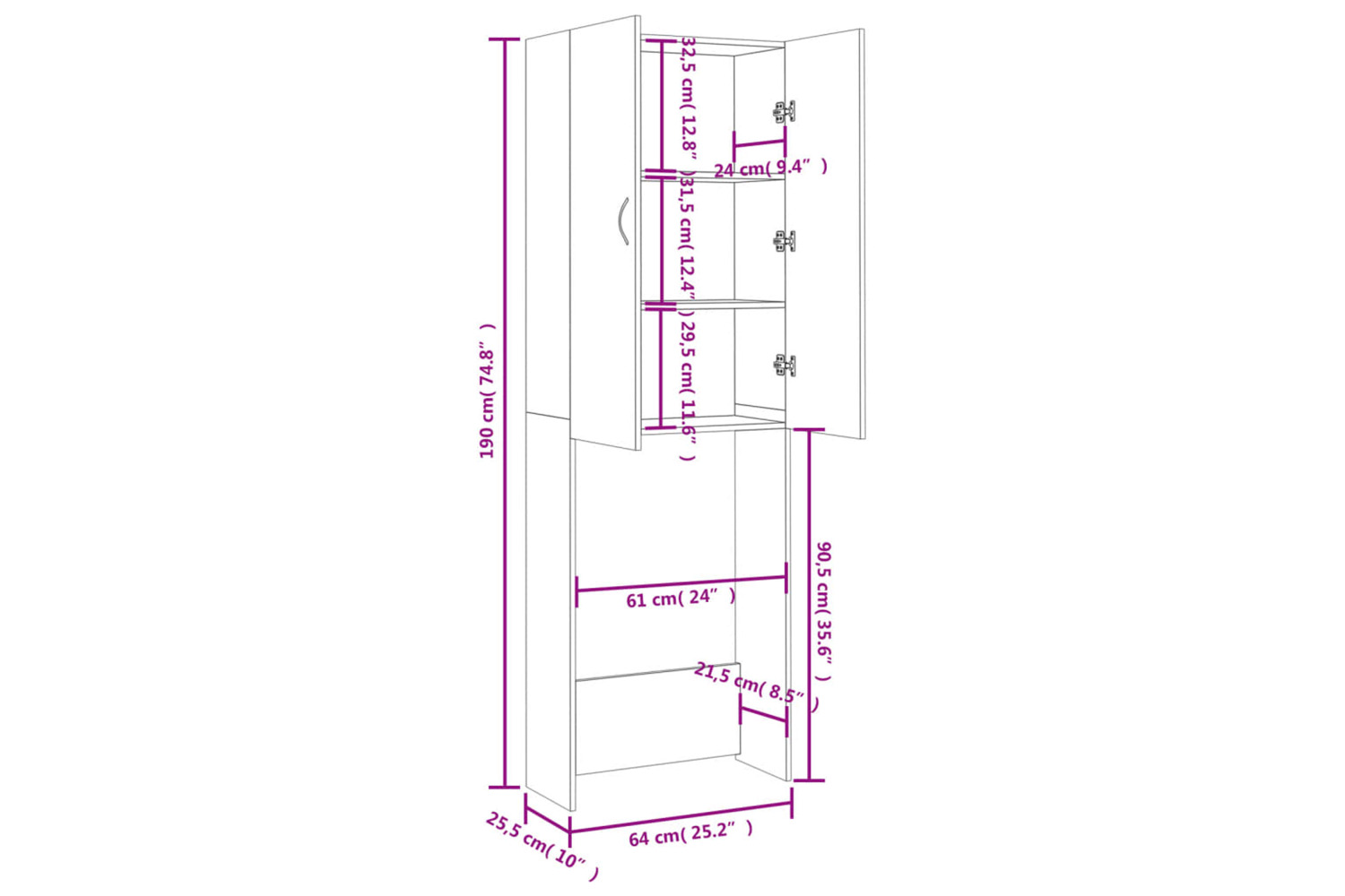 vidaXL Washing Machine Cabinet Sonoma Oak 64x25.5x190cm