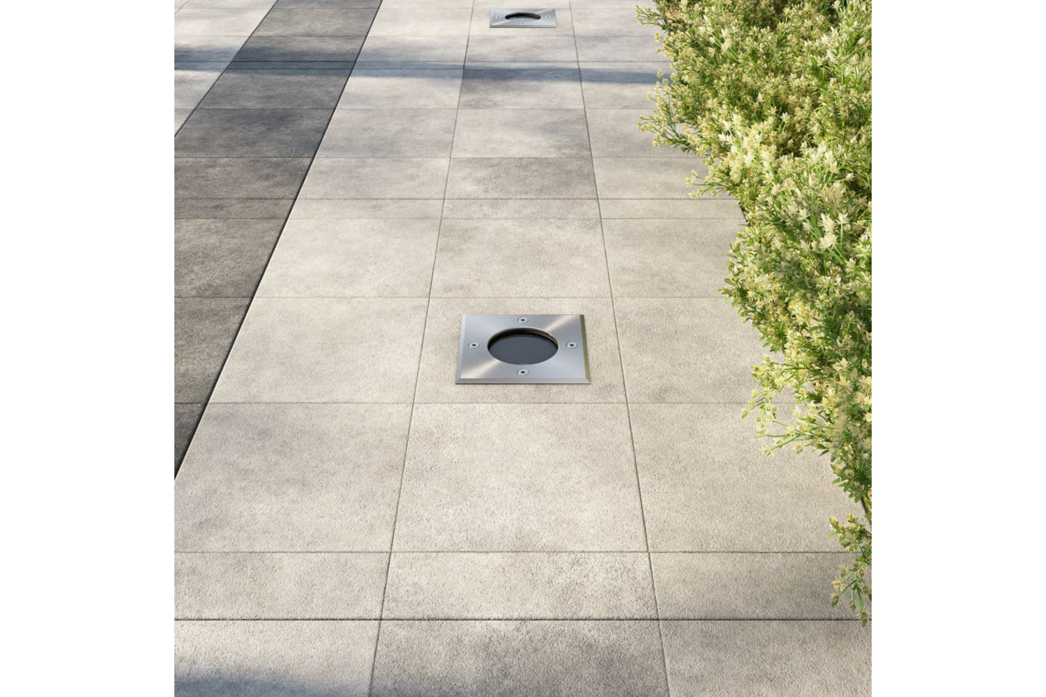 The ground light set is made of stainless steel and aluminium, and each light features a tempered glass diffuser. These ground lights can be easily assembled.
