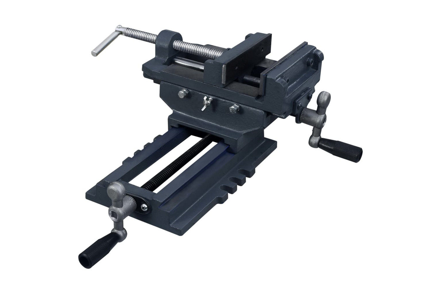 Manufactured from cast iron, the vise is strong and sturdy. This cross slide vice will be helpful when a lot of holes need to be drilled in the same workpiece, as the two axes can be adjusted by lead screws.