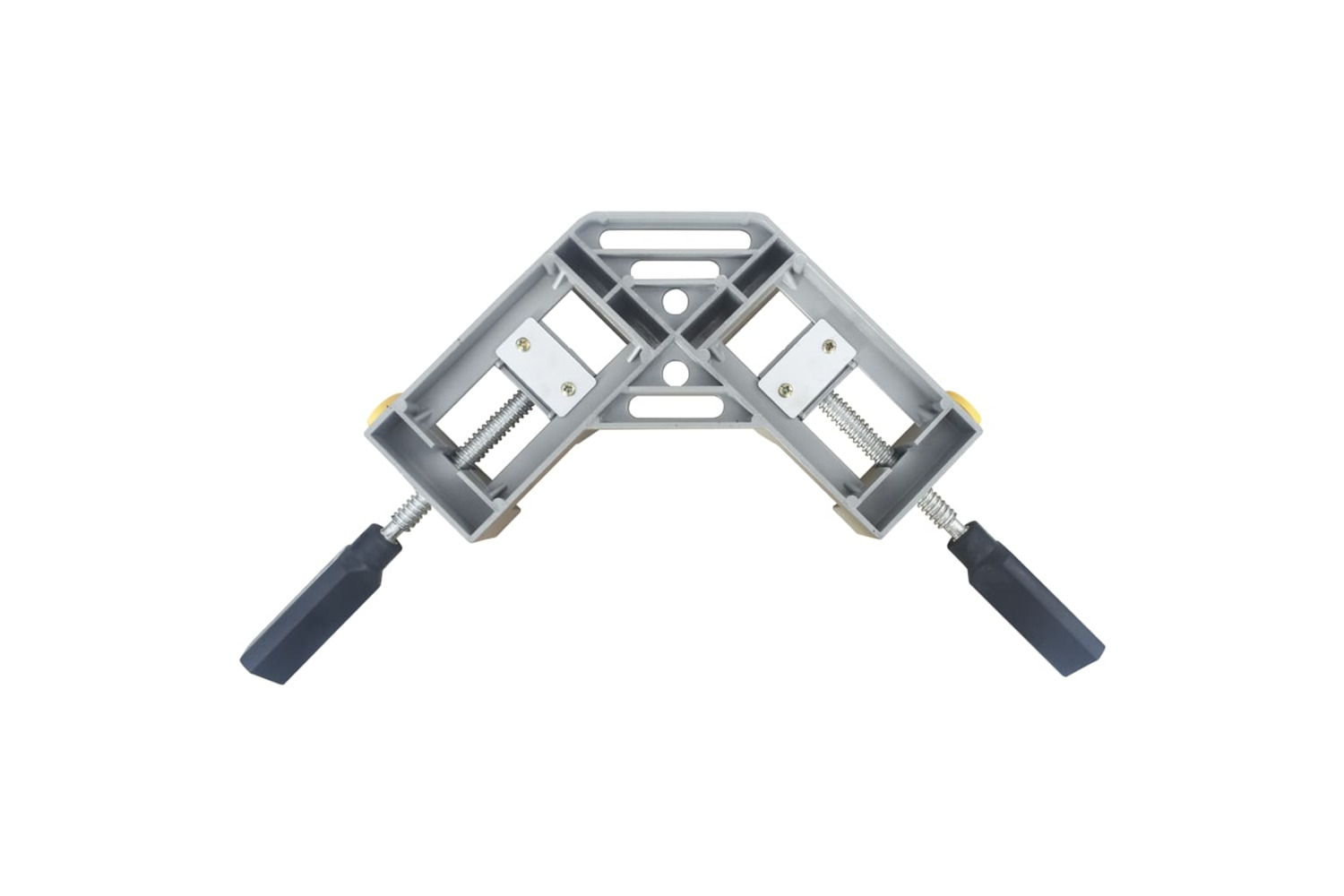 Thanks to its double-handle design, the vice can hold a wider range of objects than single handle corner vices. It allows more flexible processing, for example connecting 2 wood blocks with different thickness at 90-degree. Hardened jaws ensure a guaranteed hold with every machining operation. This right angle clamp will be helpful when the workpiece has a 90-degree angle; and the swiveling spindle and clamping head enable materials of different cross-sections to be clamped firmly and securely. This unit also features a stable base, which can be easily mounted to your workbench.