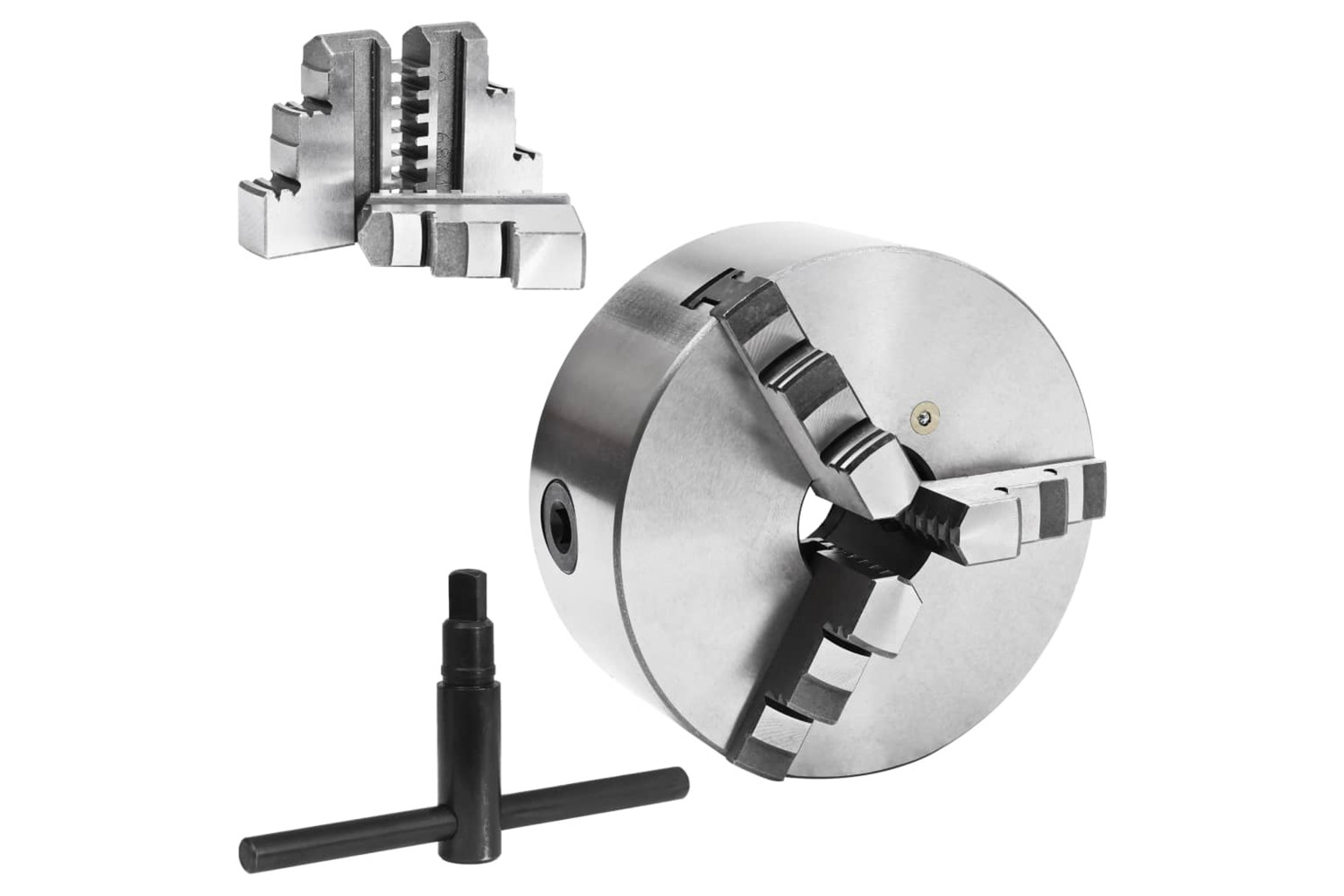 It is made of high-quality steel with high hardness and wear-resistance, making it strong and durable. This chuck is with 3 jaw design, self-centring, compact size and easy to use.