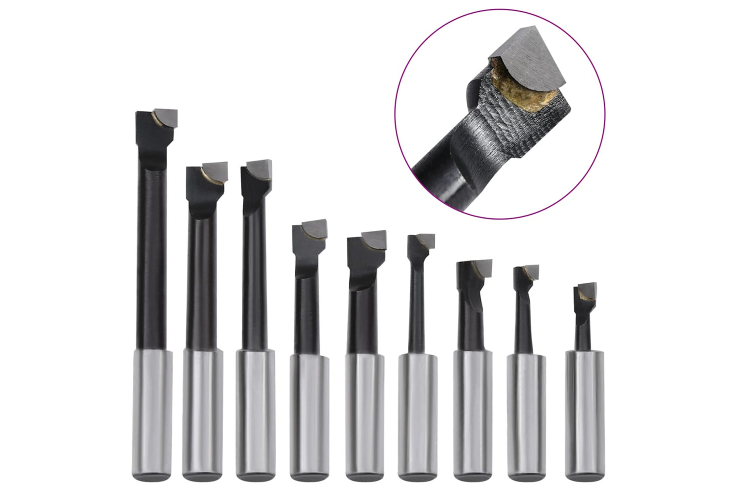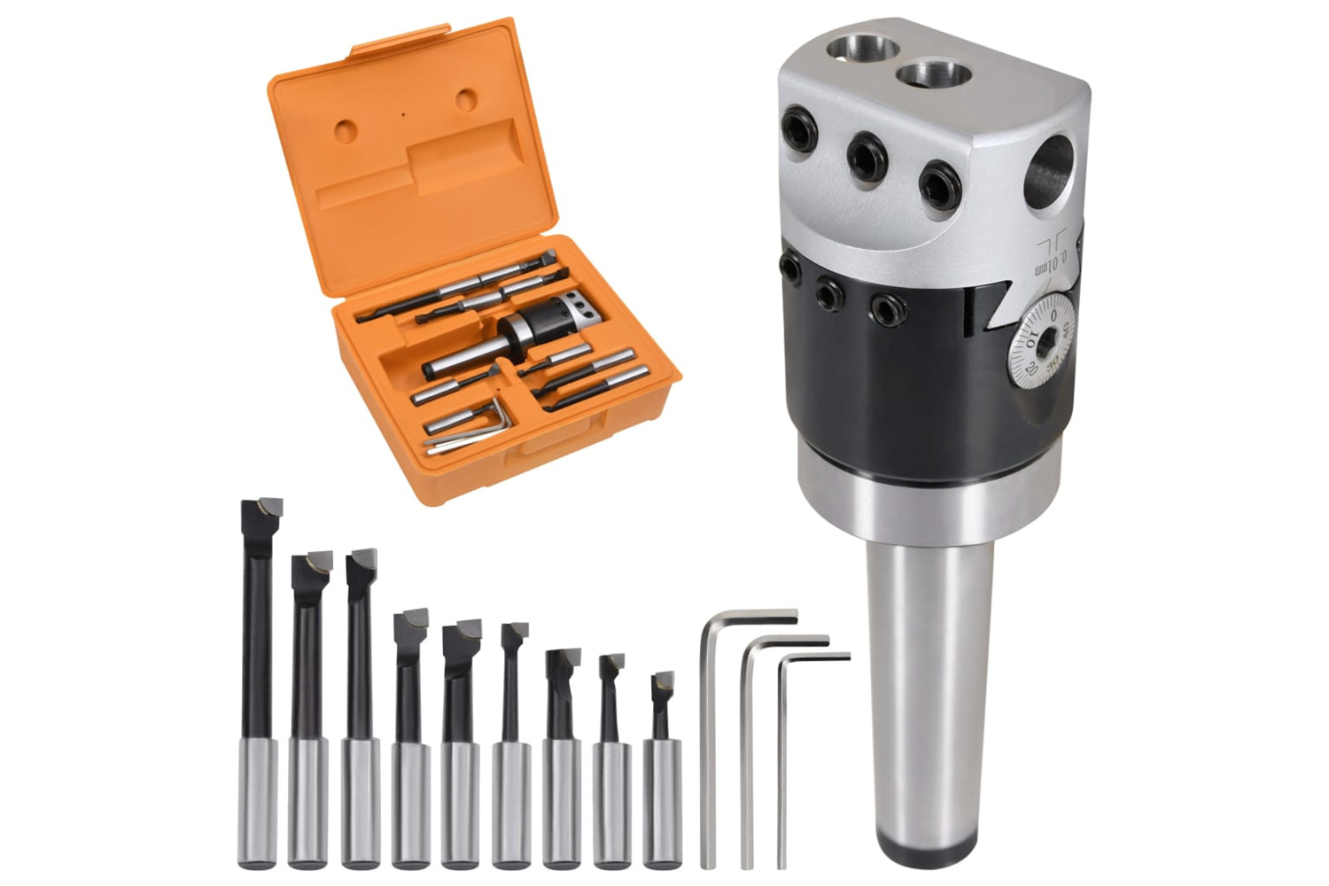 This boring tool set is made of quality steel with excellent hardness and toughness to provide stable performance. It includes 9 pcs 12 mm boring cutters in different sizes, easy to use and replace. This boring tool kit includes boring head, shank, cutters and wrenches to meet your various needs. A box is included in the delivery for easy storage and to carry conveniently.