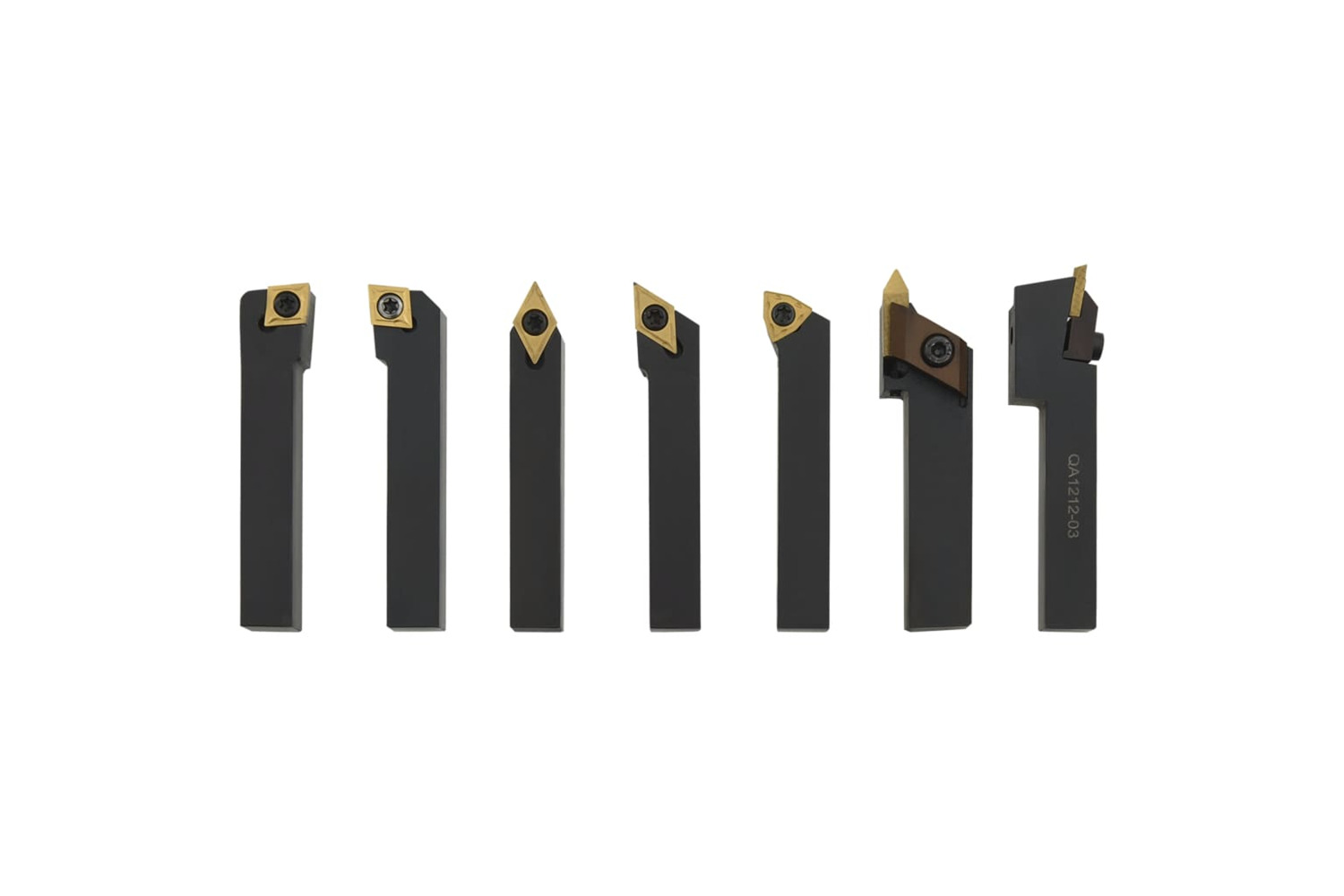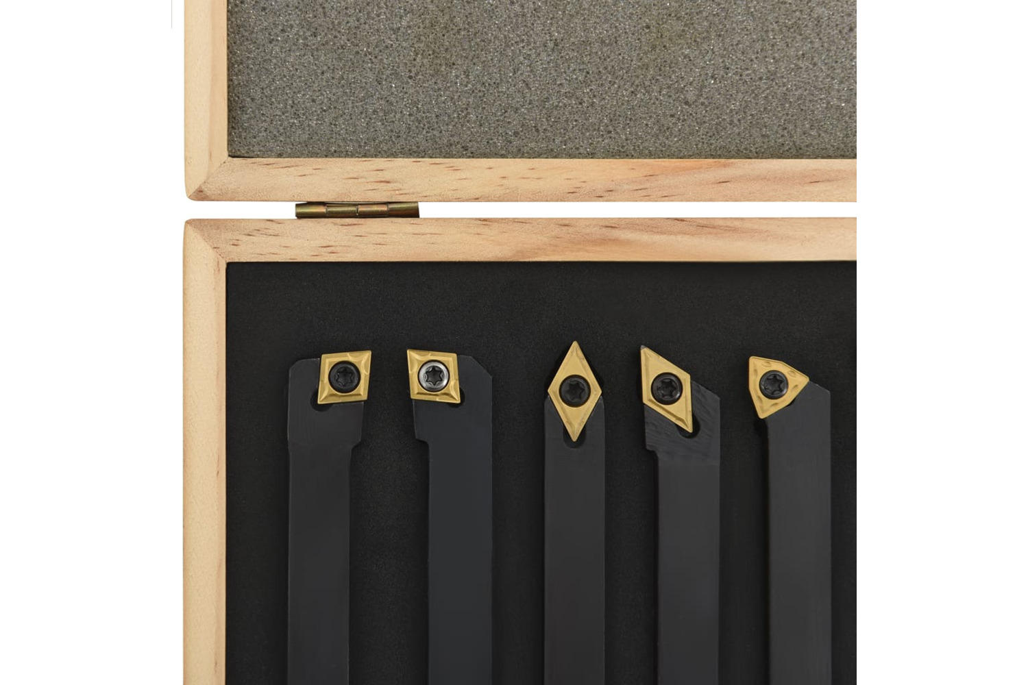 This set of 12 mm turning tools consists of various tools for turning, cutting and threading. These carbide tips are suitable for turning steel and steel alloys. It is an ideal tool set for the lathe.