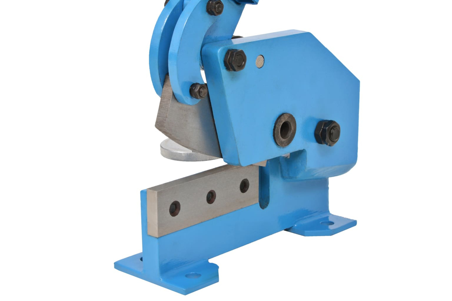 This manual shearing machine has a maximum cutting thickness for steel sheets of up to 6 mm and for rods of up to 11 mm. Its automatic spring return lever with a soft-grip handle gives you an excellent cutting experience. The hand lever cutter can be easily secured to a workbench or hard surface with its bottom fastening plates.