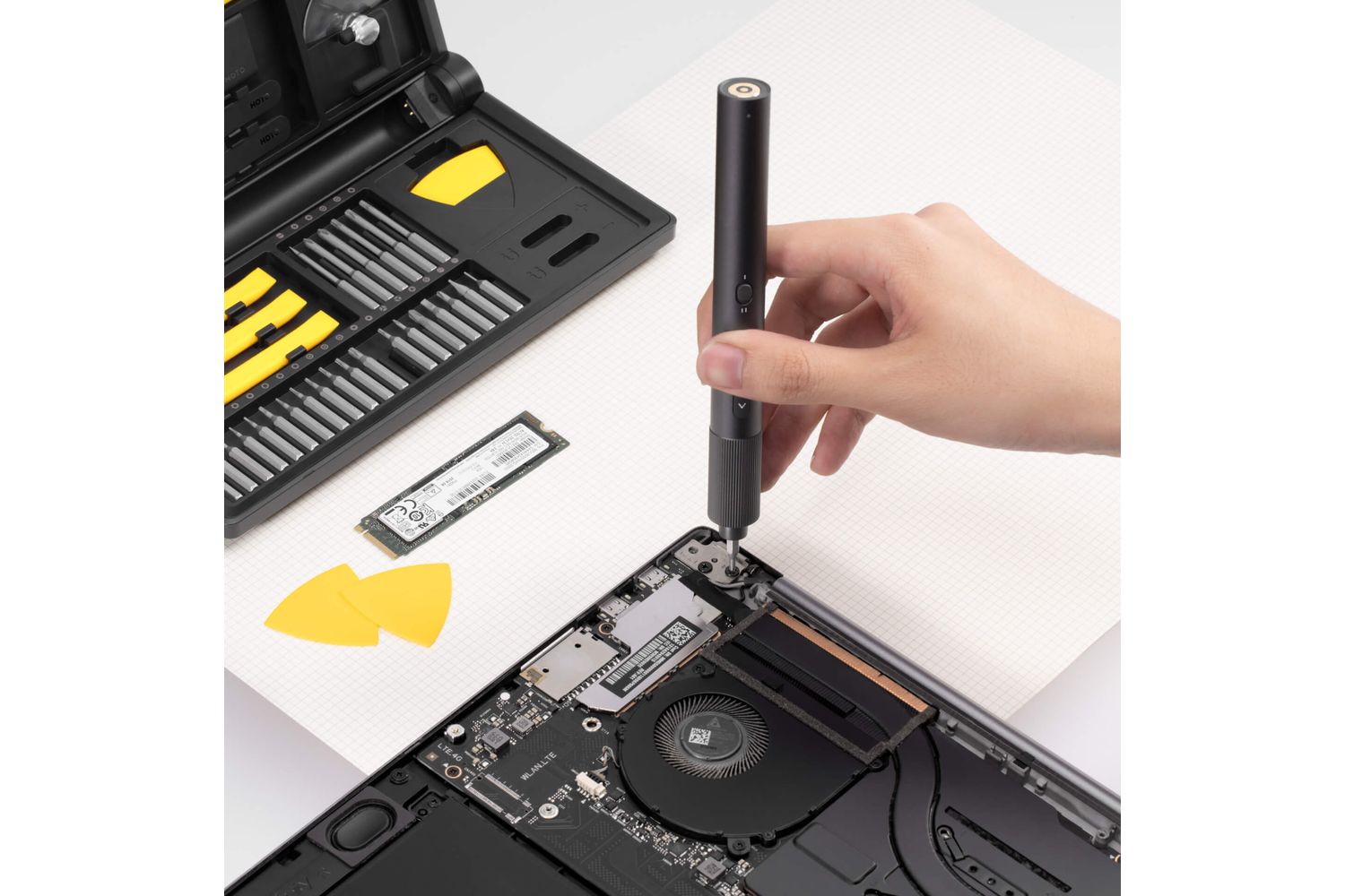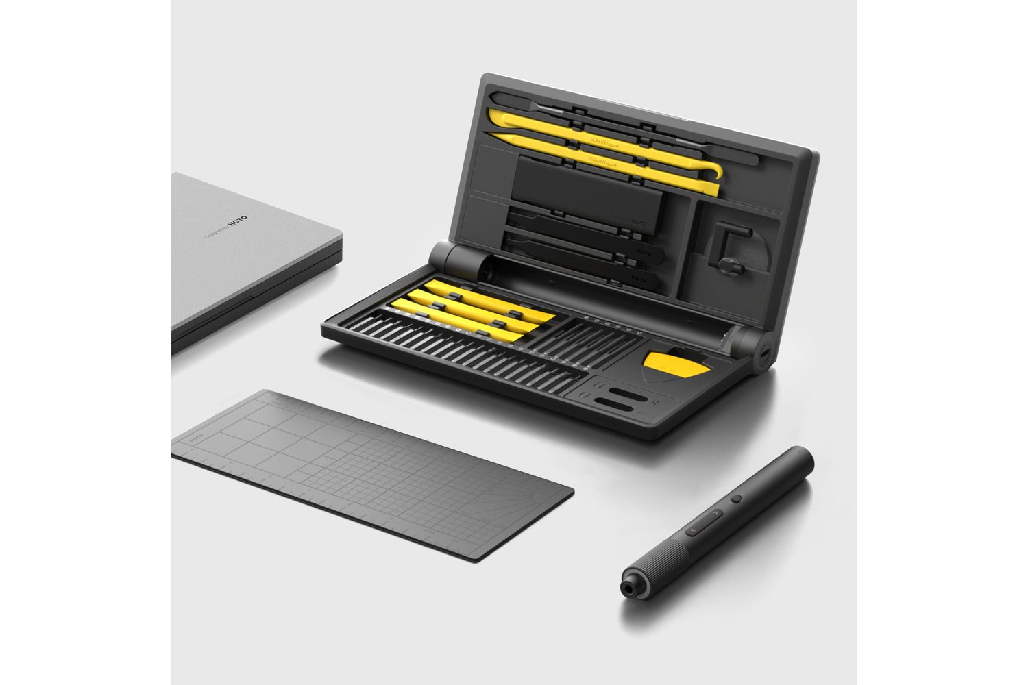 Organisation is key, and the clamshell workstation keeps all 48 premium accessories neatly arranged and within reach. The snap-on magnetic bit installation allows for quick, secure bit changes, while the built-in magnetiser makes picking up even the tiniest micro screws a breeze. Crafted with a durable anodised and sandblasted aluminium housing, the screwdriver offers a non-slip, elegant grip, ensuring comfort and control during extended use.
