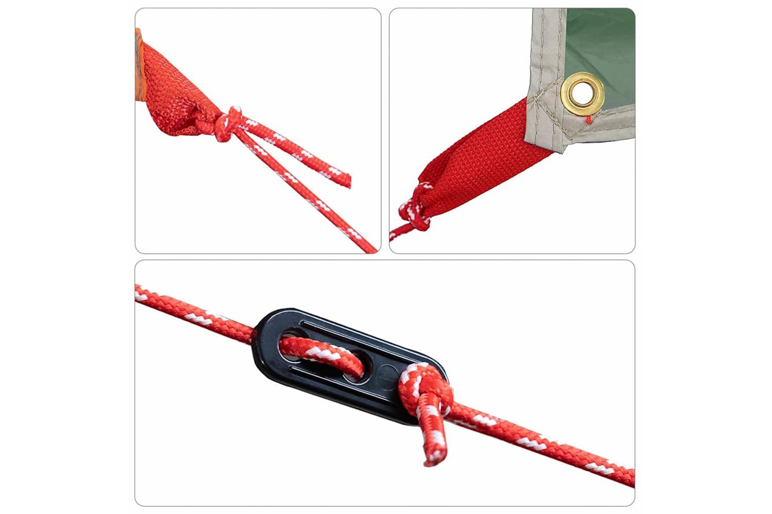 - Materials: This tarp is tough, blending polyester and nylon for durability. The polyester takes on the weather, while nylon adds extra strength. Its smooth and solid fabric stands up to sun and rain, making sure it lasts through your outdoor adventures.