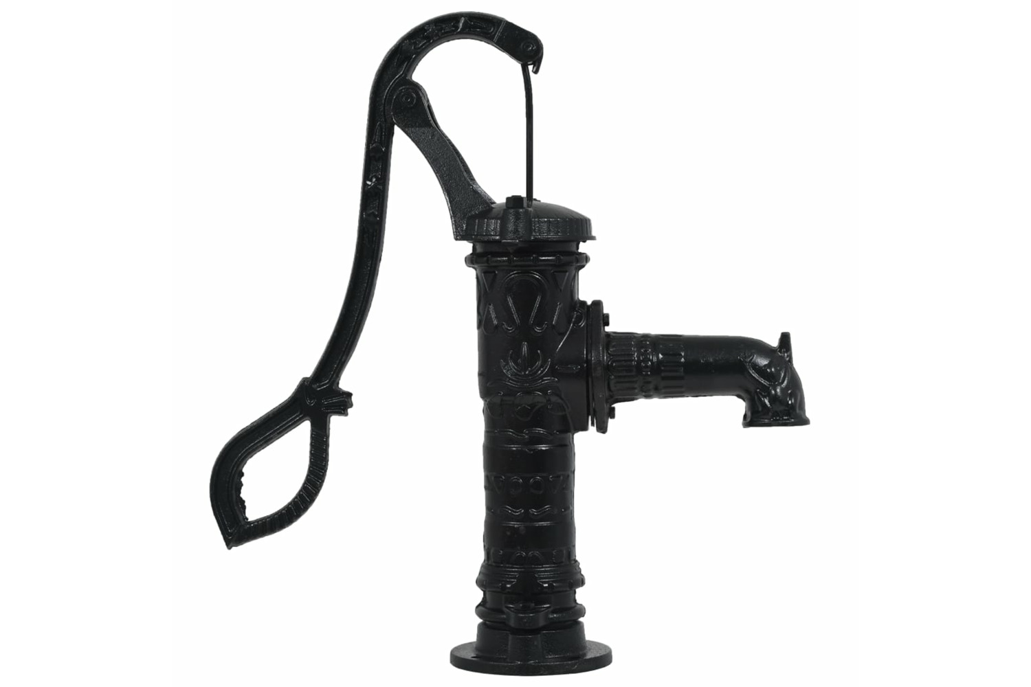 With a cast iron construction, it is robust and highly durable. The pump itself has a 38 mm (1 1/2") female fitting at the bottom, and a PVC pipe or a stainless steel pipe needs to be connected to the fitting (either through a male threaded fitting or with a hose connector) to divert water into the pump. The stand makes the pump much taller, offering a more comfortable operating position. The stand itself is suitable for most hand pumps with 4 x 12 mm mounting holes at the bottom. The pump and the stand can be used separately. Please note that delivery only includes the water pump and the stand.