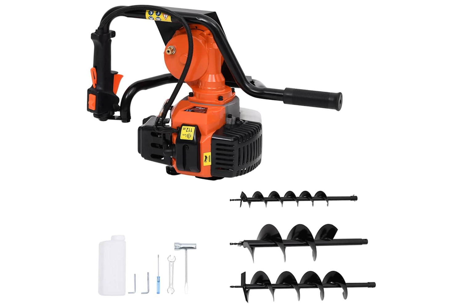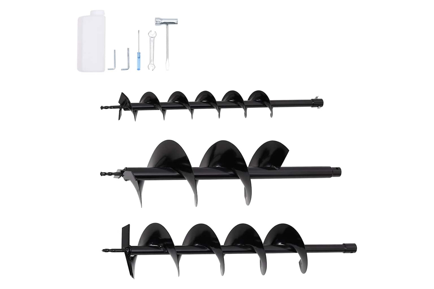 This gasoline ground auger comes complete with 3 iron ground drills, 1 ratio bottle, 1 drill fix set and 1 tool set. The provided 3 drills have different diameters so that you could choose whichever to accomplish your work.