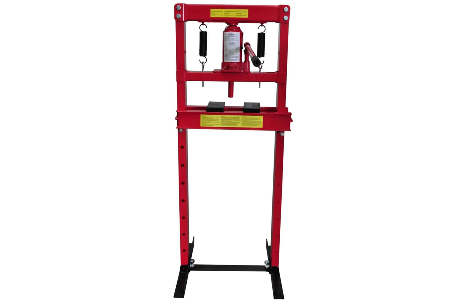 Its bolted 8-way adjustable cross beams can easily be raised and lowered for an ideal working distance. Its heavy duty construction and red powder coated finish will look great on your work floor for years to come.