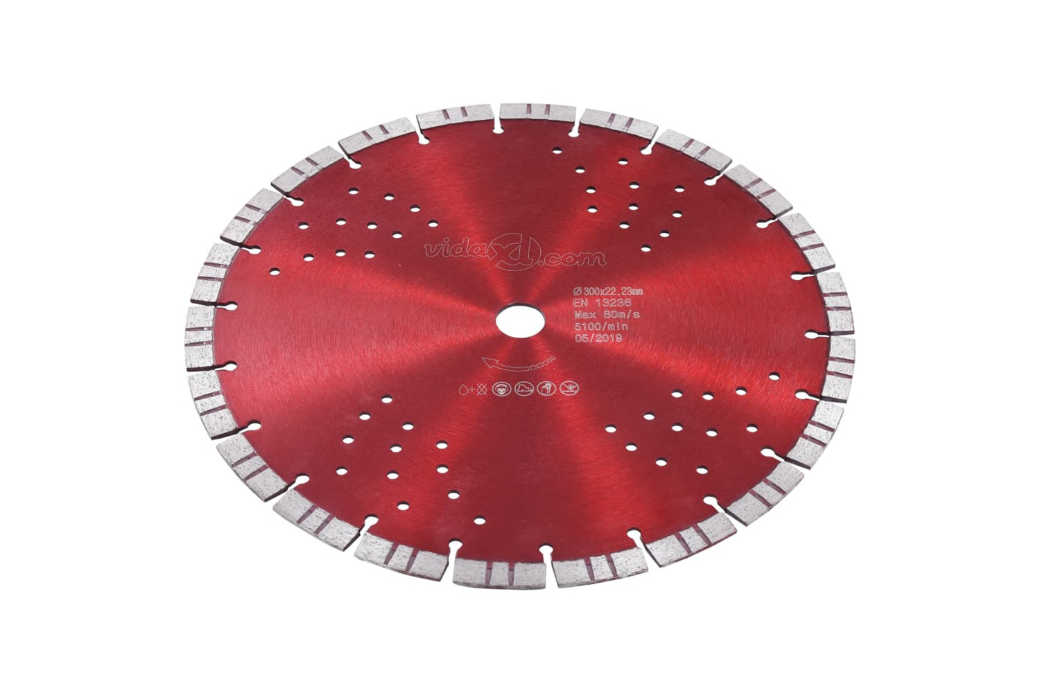 Featuring turbo segment and holes, this diamond disc, when mounted on table saws, cut-off machine and grinders, is suitable for cutting concrete, granite, brick and other industrial applications and for hand workmanship, such as porcelain, stoneware.