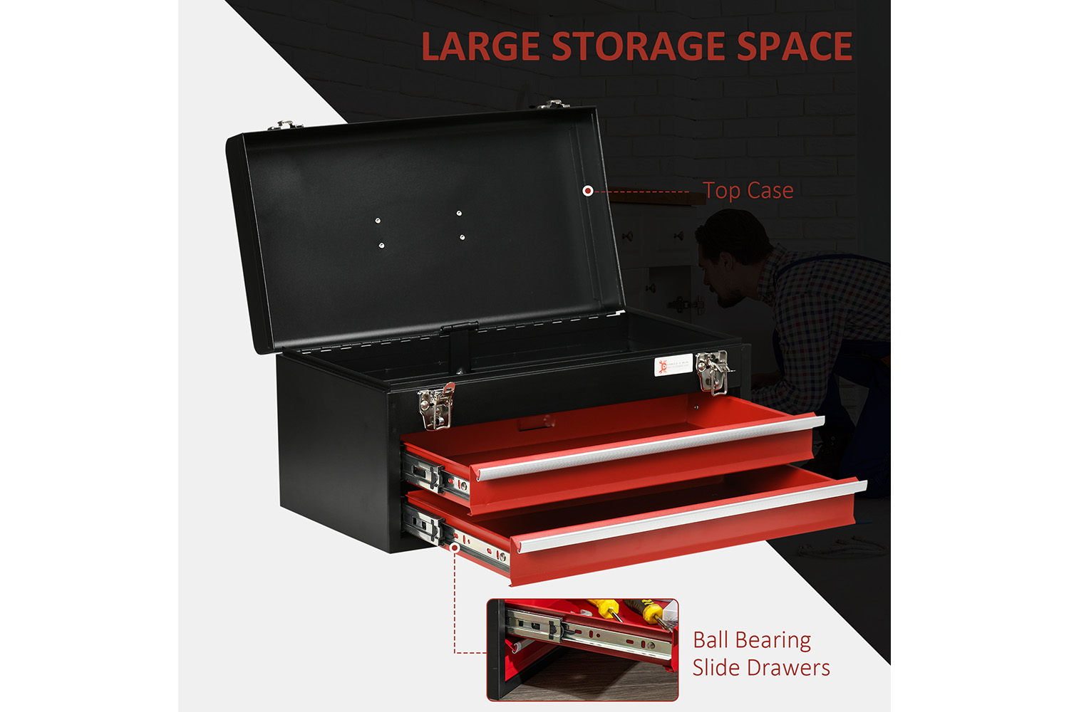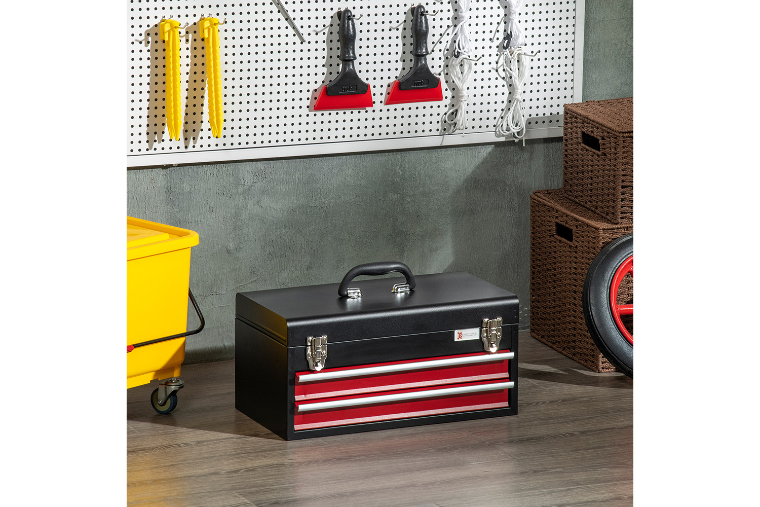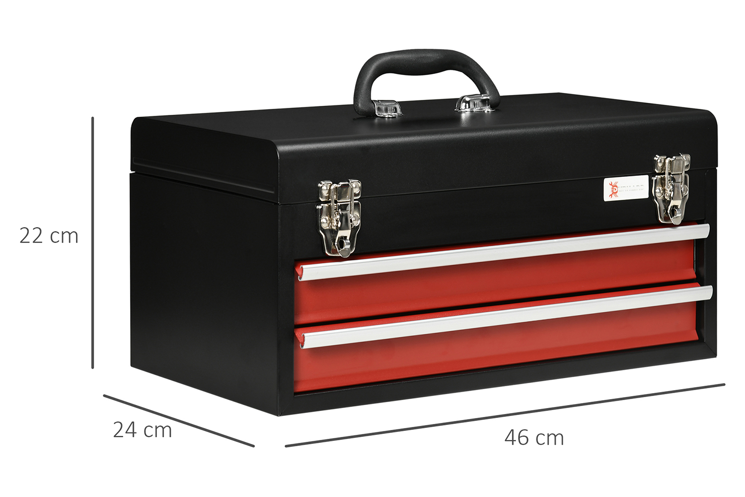 • Features two drawers and top compartment - space for a variety of tools and hardware