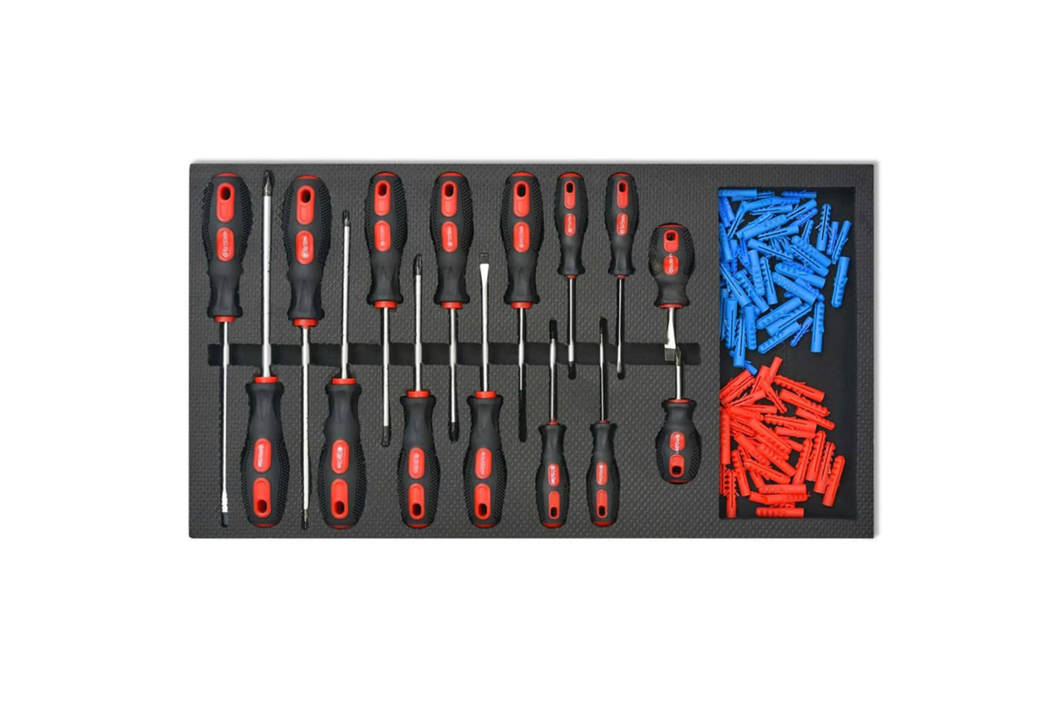 - 7 x Screwdriver: 0 x 75, 0 x 75, 1 x 100, 2 x 150, 2 x 125, 3 x 150 and 0 x 100 mm