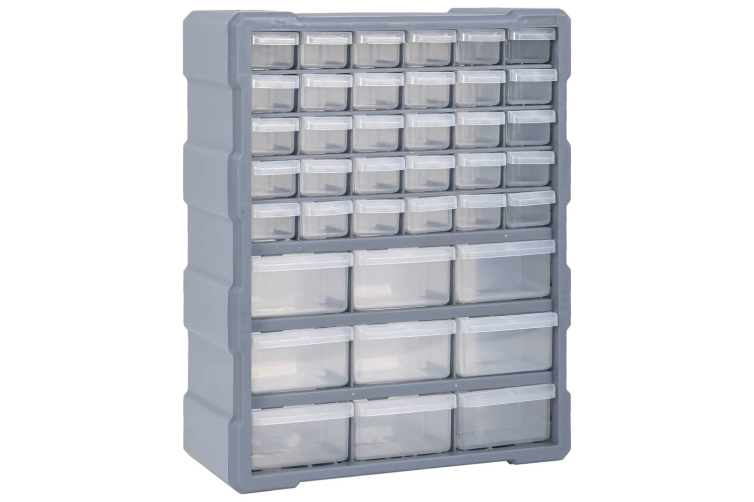 This must-have multi-drawer organiser with totally 39 drawers is designed for neatly storing a wide variety of items. It can also be used as a sewing or nail box.