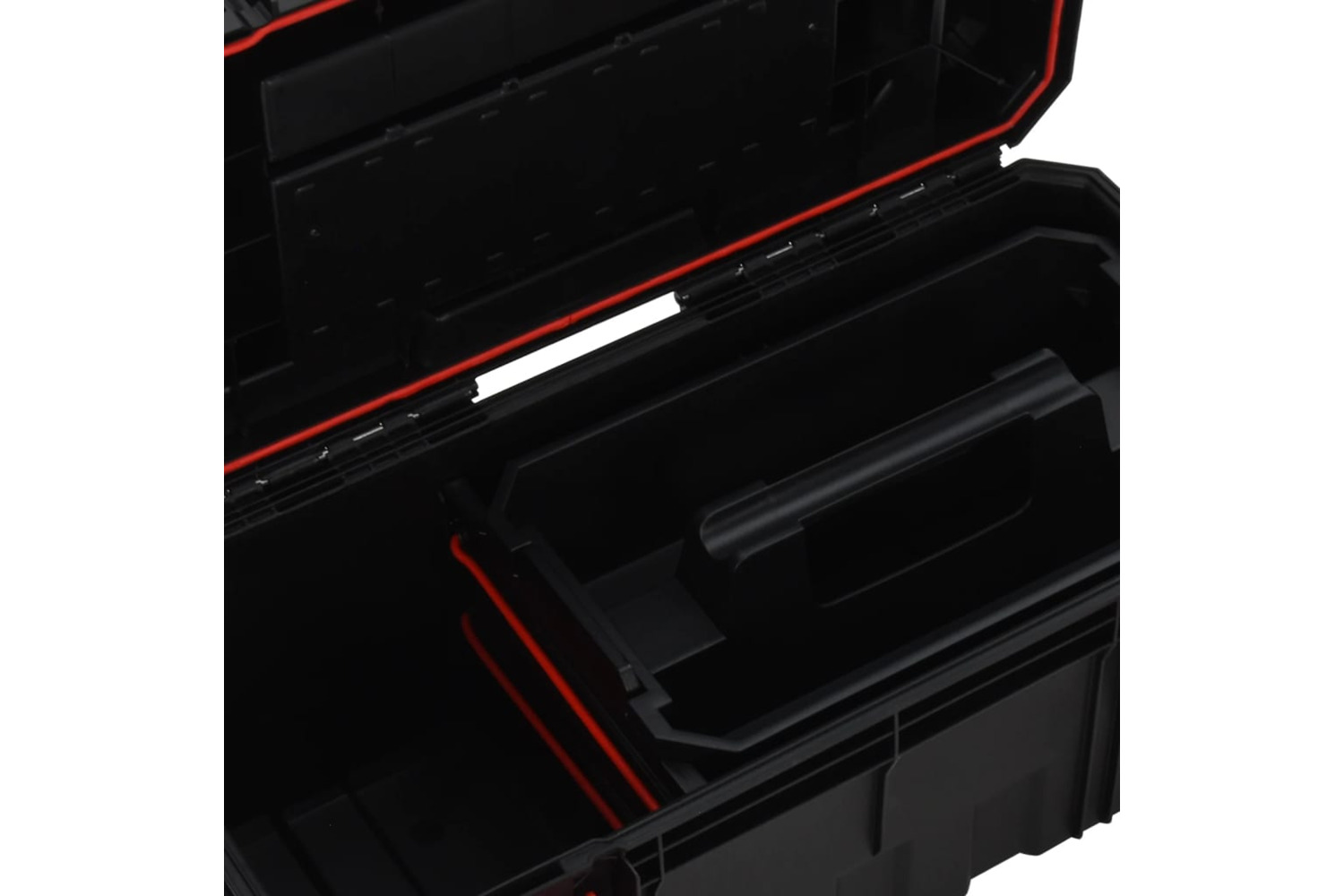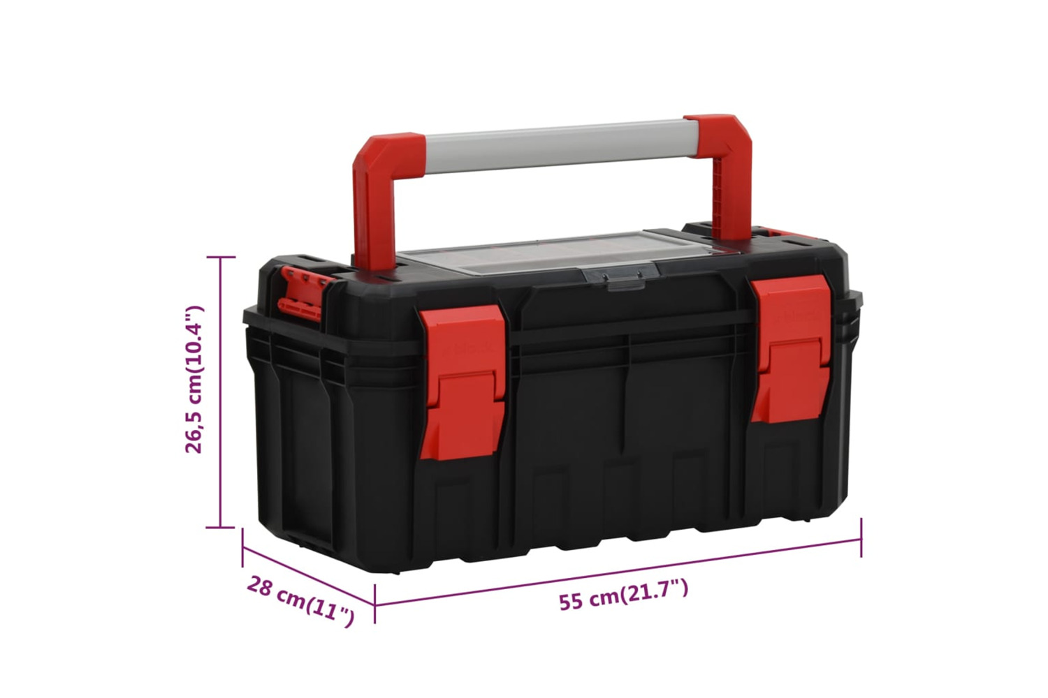 This handy tool box, featuring deep trays and storage compartments of different sizes, is a practical helper in your garage, workshop and similar places!