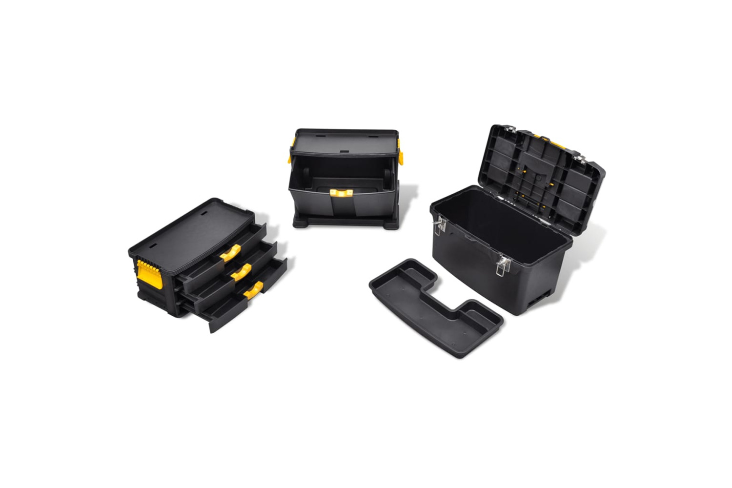 Both the top case and the bottom case are spacious enough to accommodate large tools, while all the middle 3 drawers have compartments inside for you to better classify small-sized tools, like screws and nuts. Thanks to the side locks, you could easily separate the tool case when you only want to take the top case.