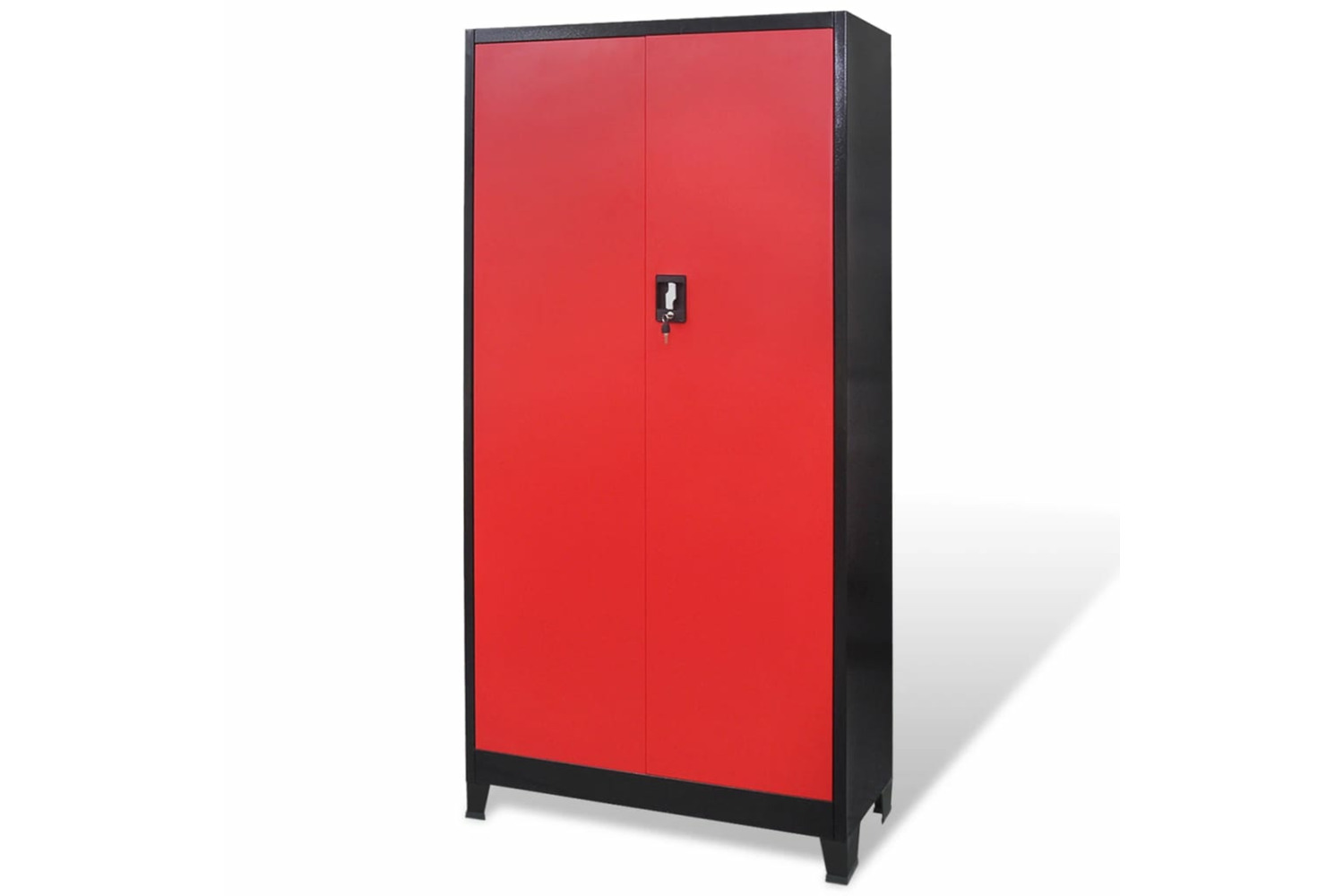 Constructed from heavy-duty steel with a scratch-proof coating, it is very robust and durable. Your tools and other belongings will be kept safe thanks to a 3-point locking system with 2 matching keys. This tool cabinet has 2 built-in racks for hanging storage bins (not included in the delivery), and 3 removable shelves with a maximum load capacity of 40 kg each. The pegboard at the back can be used to hang all kinds of tools such as wrenches, pliers, hammers, etc. (tools and hooks are not included in the delivery).