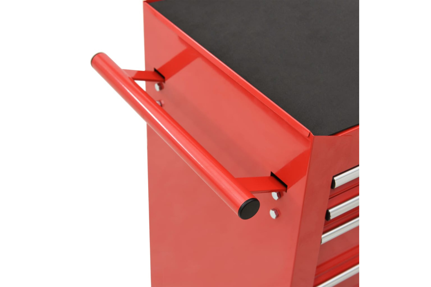 Made of sturdy steel, the workshop tool trolley has a robust and durable construction. Thanks to the integrated locks, drawers can be locked at once to prevent them from opening accidentally when the trolley is moved. Each drawer has a non-slip bottom lining to keep your tools in place. The robust countertop on the tool box is a great spot to keep frequently-used tools within reach. With four swivel castors, two of which have brakes, the trolley can be moved around easily. There are two convenient side handles for pushing the trolley.
