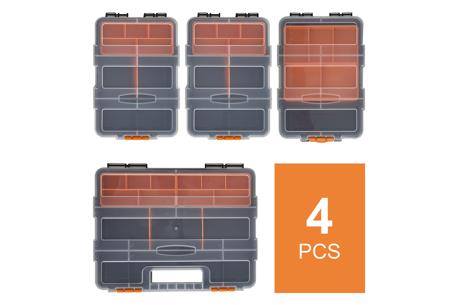 Those who like DIY and crafts-making must not miss this 4-piece storage box in different sizes. This set of durable storage boxes has a range of applications for keeping your small to medium sized belongings safe. Whether it is at home, workshop, office, kitchen, garage or shed, make sure you can find what you want! High visibility orange not only makes your storage look amazing, but also easy to catch.
