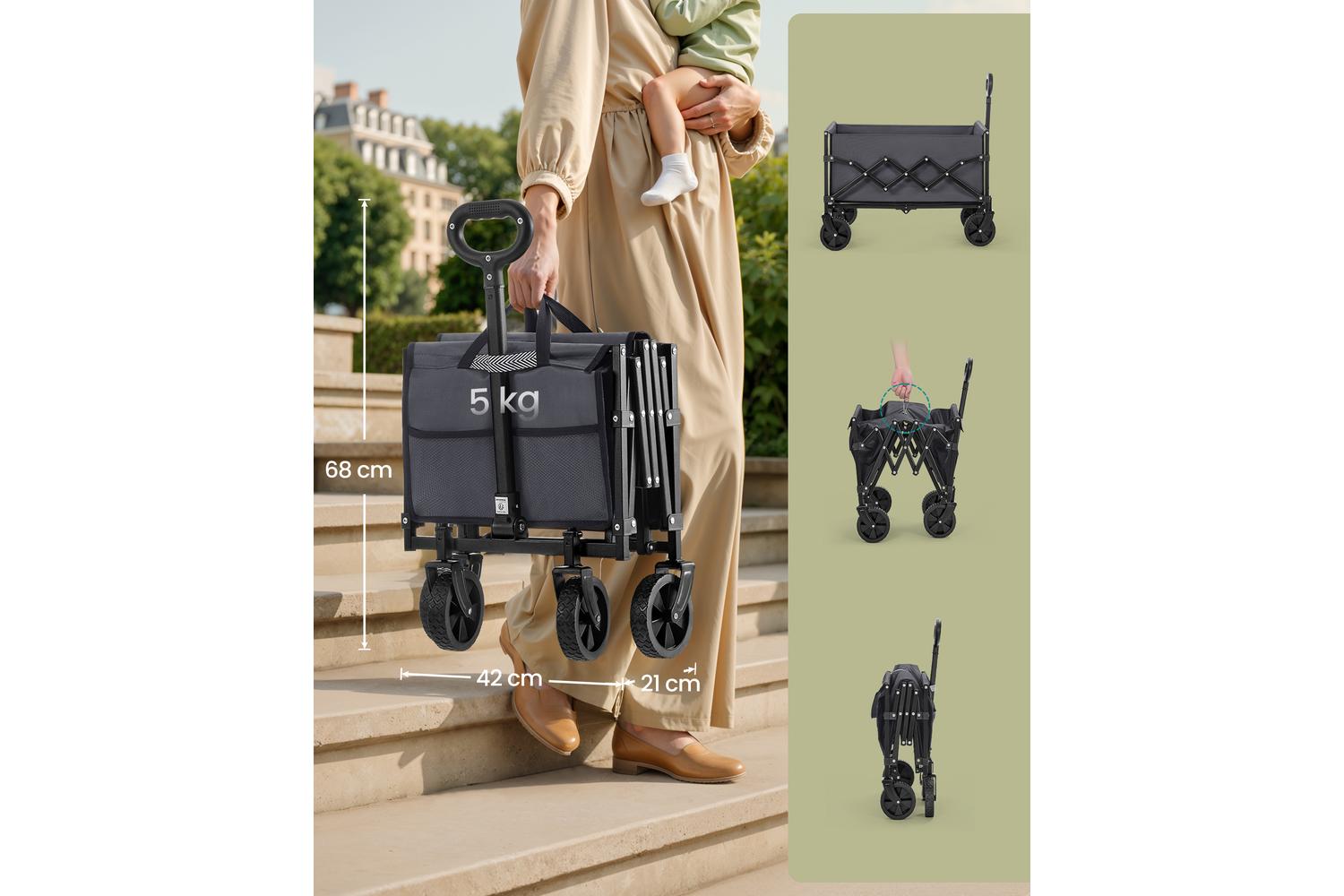 Make every outdoor adventure, garden project, or family outing easier with the SONGMICS Foldable Wagon. Designed for Irish homes and lifestyles, this robust trolley is the perfect companion for anyone who values convenience, durability, and versatility. Whether you are hauling gardening tools, carrying groceries, or packing for a picnic in the park, this foldable wagon delivers reliable performance every time.