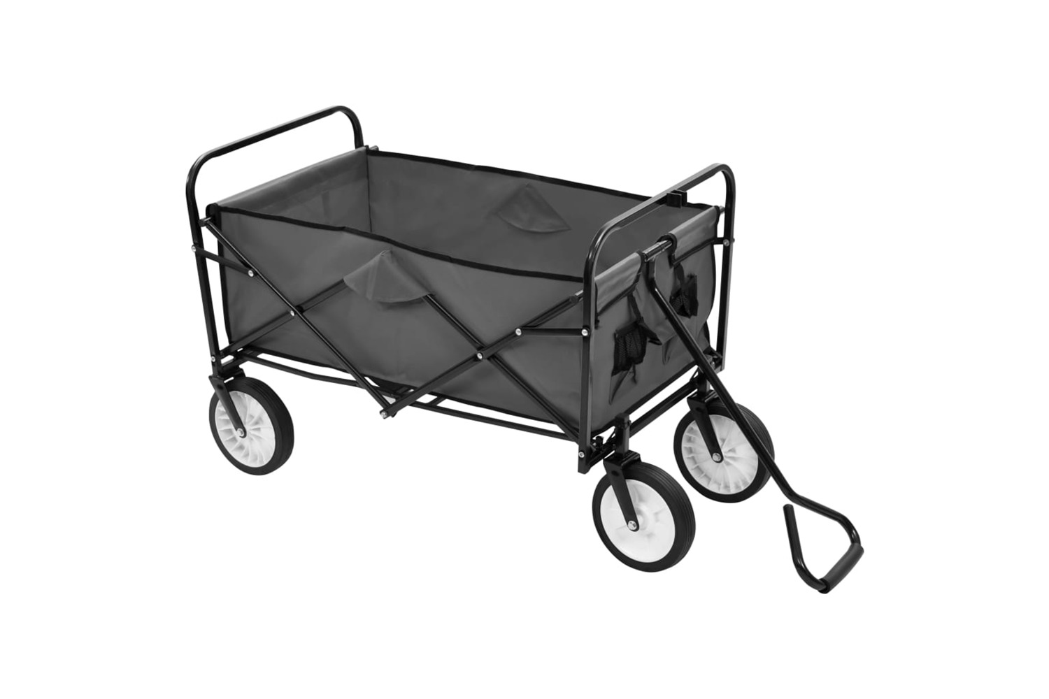 This steel frame and 600D oxford fabric ensure that hand cart is sturdy, durable and easy to clean. With a loading capacity of 75 kg, the wagon can easily transport your belongings, cargoes, plants, fertiliser, tools and other stuffs. Additionally, the 360?? rotatable front wheels enable the trolley move smoothly on uneven and coarse road. Padded handle ensures a firm grip as well. Thanks to its foldable design, the hand truck is easy to store and transport.