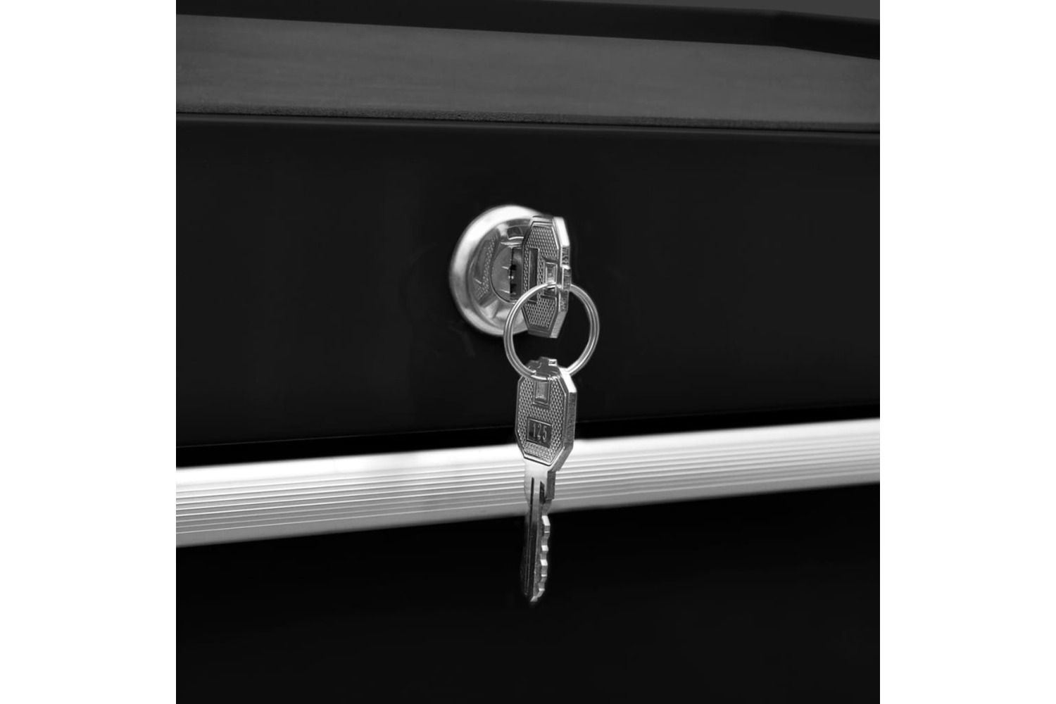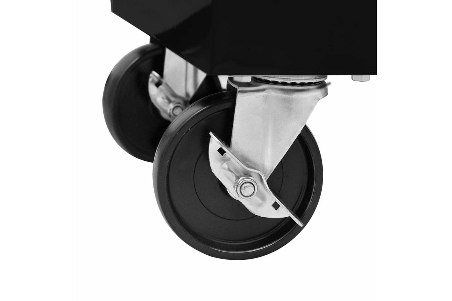 Thanks to the integrated lock, all drawers can be locked at once, which prevents them from opening accidentally when the trolley is moved around. Two of the swivel castors have brakes. The robust countertop on the tool trolley will be a great spot to keep frequently-used tools within reach. There is also a convenient side handle for pushing the trolley.