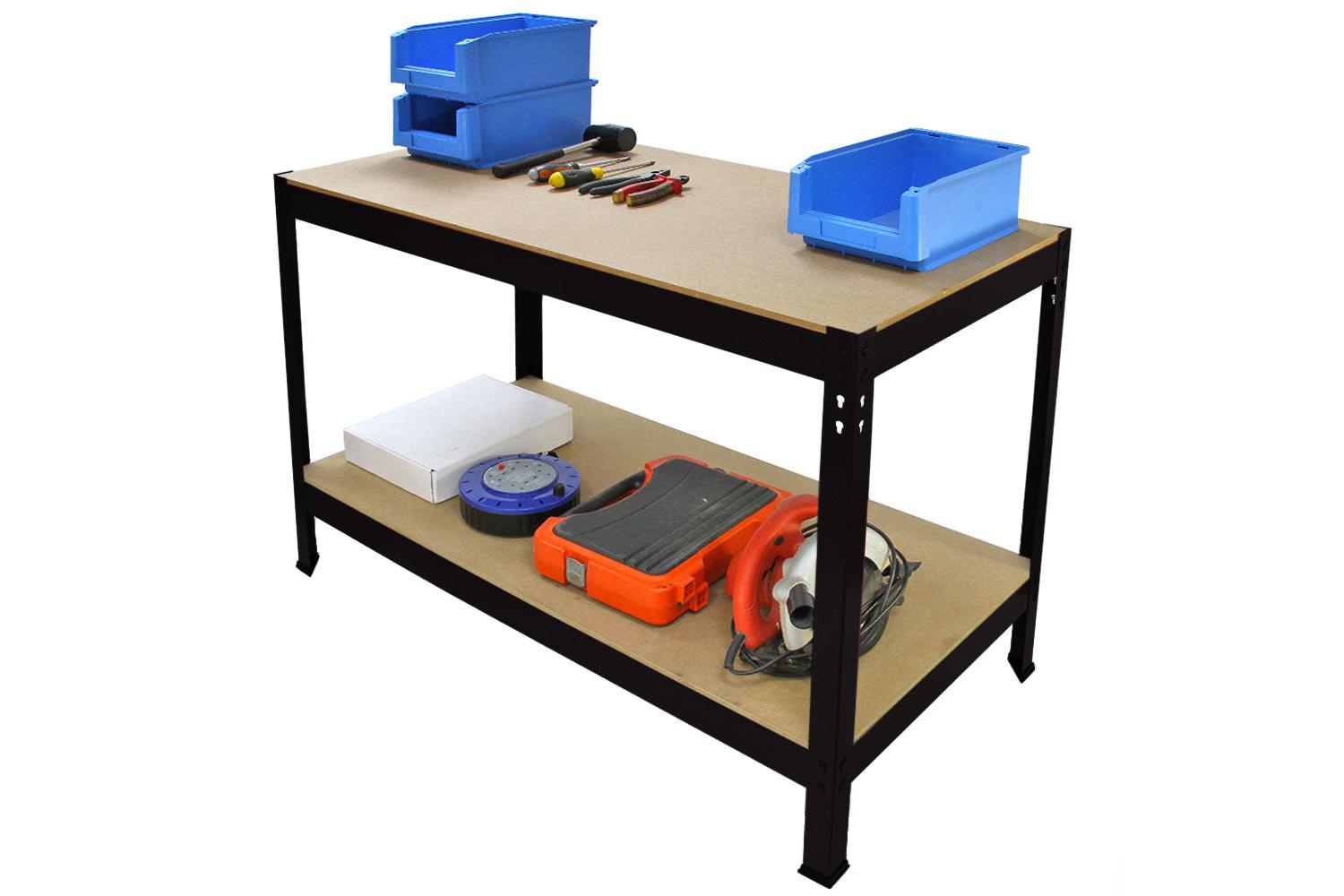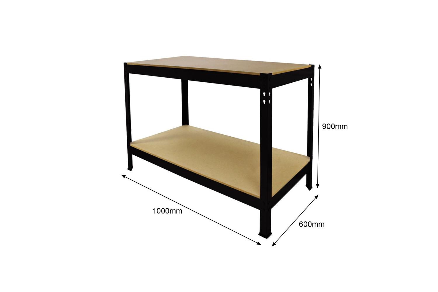 Crafted with a high-quality steel frame and complemented with sturdy MDF shelves, this workbench offers unbeatable strength and resilience. Each of the shelves has an astonishing load capacity of 200kg, offering ample space and security for your tools and essential gear. It stands tall at a comfortable working height of 90cm, extending wide at 100cm and plunges back 60cm, providing a generous workspace and storage area.