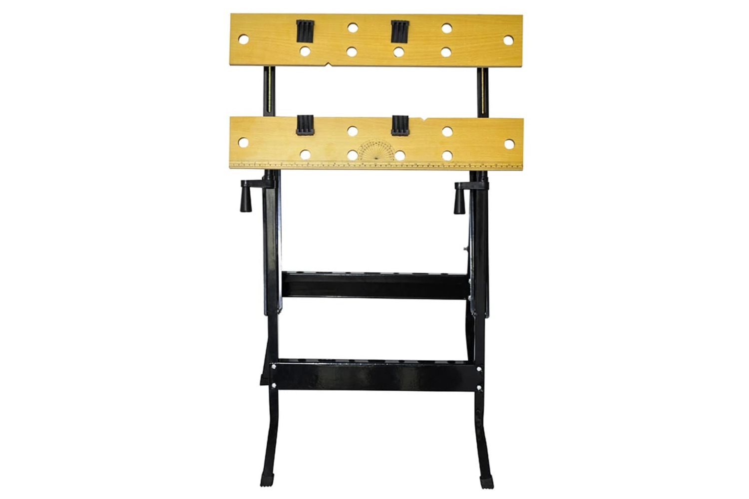 This is an ideal tool for your workplace (eg. for sawing, cutting jobs and various other activities). The recorded ruler and protractor allow your work to be precise and accurate. The work surface can laterally be adjusted in two parts. You will be able to work safely thanks to the secure non-slip rubber feet. The work surface is made of distortion-free MDF. This workbench can easily be assembled and mounted.