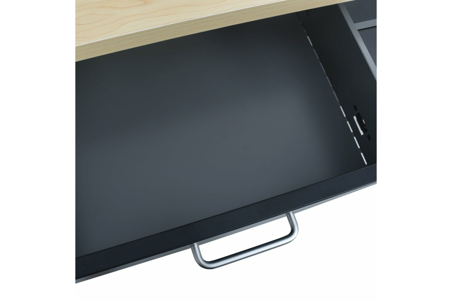 The large and sturdy tabletop provides a stable platform for all your repair works. The workbench has 2 drawers, ensuring that you can organize your tools, parts and accessories such as screws, nails and adhesive tape well. The drawers are equipped with ball bearing mechanism for smooth sliding. There are suitable compartments for larger tools, the 2 cabinets with lockable doors, which can easily accommodate drills, cable drums and grinders.