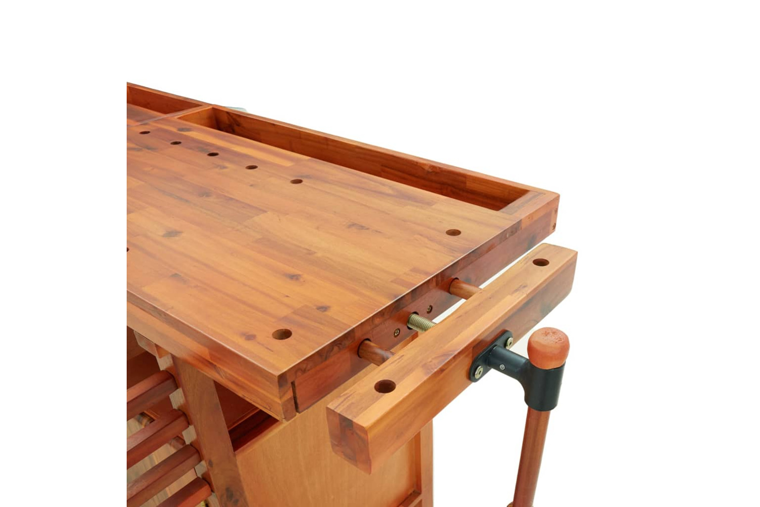 - Additional sturdiness: The work table is equipped with 1 front vice and 1 end vice, including 4 wooden rods for fixing workpieces firmly and securely.