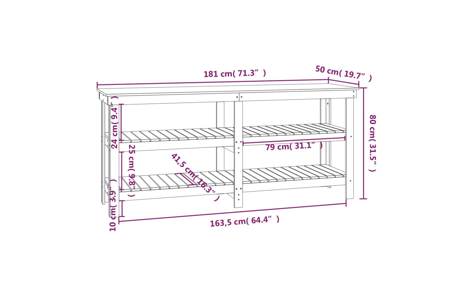 VidaXL 823657 Work Bench Honey Brown 181x50x80cm Solid Wood Pine