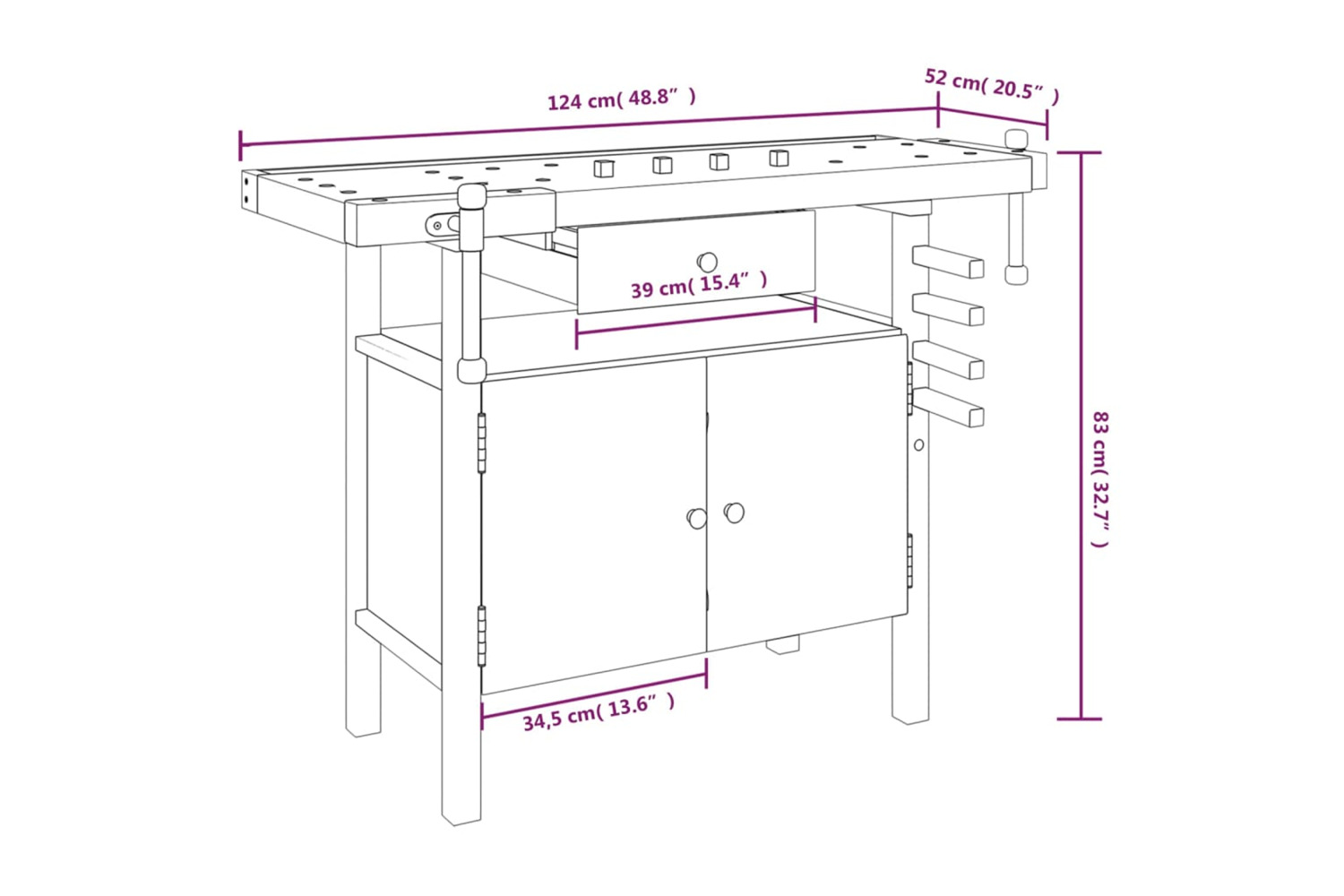 - Ample storage space: This work station, featuring 1 storage drawer and 1 compartment with doors, provides ample storage space for keeping your tools well organised and within reach.